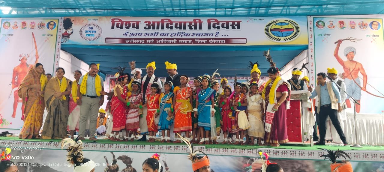 शैलेश अटामी /IMNB दक्षिण बस्तर दन्तेवाड़ा/ 9अगस्त छत्तीसगढ़ सर्व आदिवासी समाज जिला ईकाई दन्तेवाड़ा के द्वारा माई दन्तेश्वरी परिसर मेनका डोबरा दन्तेवाड़ा में विश्व आदिवासी दिवस समारोह कार्यक्रम का आयोजन किया गया बाईक रैली मेनका डोबरा से बलुद रोड होते हुए अस्पताल होते हुए कलेक्टर आफिस चौंक से वापस मेनका डोबरा तक आयोजन किया गया साथ ही दूसरी तरफ रैली आयोजन रैली के साथ डोल नगाड़े तथा आतिशबाजी के साथ जिले मूल आदिवासी द्वारा मेनका डोबरा से बस स्टैंड होते हुए बालुद चौंक होते हुए वापस मेनका डोबरा तक हजारों सैकड़ों की भीड़ उमड़ गई