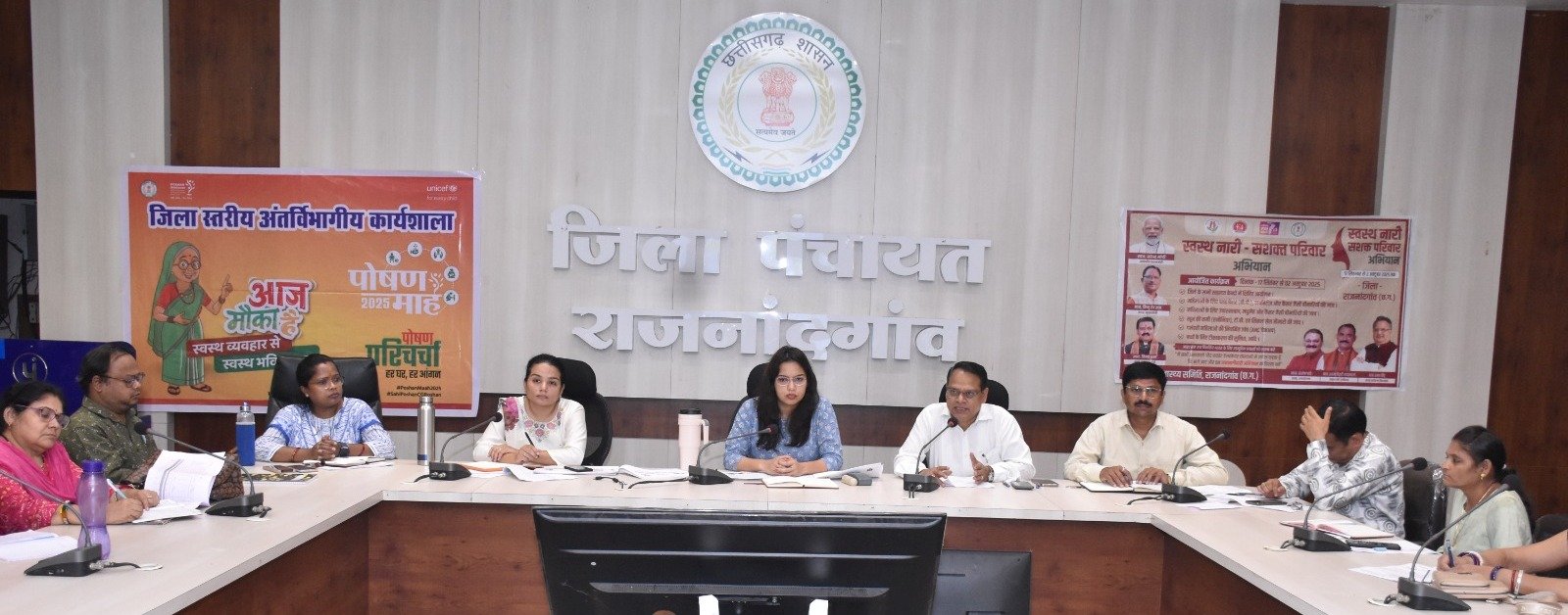 राजनांदगांव 22 सितम्बर 2025। मुख्य कार्यपालन अधिकारी जिला पंचायत सुश्री सुरूचि सिंह ने जिला पंचायत सभाकक्ष में महिला एवं बाल विकास विभाग, स्वास्थ्य विभाग तथा राष्ट्रीय ग्रामीण आजीविका मिशन की संयुक्त बैठक ली। सीईओ जिला पंचायत सुश्री सुरूचि सिंह ने कहा कि जिले में कोई भी गर्भवती माता एवं कुपोषित बच्चा विभागीय सेवाओं एवं योजनाओं से वंचित नहीं होना चाहिए। उन्होंने एनआरएलएम की पोषण सखी, जेंडर दीदी को मिलकर व्यापक रूप से सर्वे कर सभी गर्भवती माता का आंगनबाड़ी केन्द्र एवं स्वास्थ्य केन्द्र पर अनिवार्य रूप से पंजीयन कराने के निर्देश दिए। उन्होंने कहा कि बच्चा प्रसव के समय ही स्वस्थ एवं सुपोषित हो, इसके लिए प्रत्येक गर्भवती माता आयरन टेबलेट एवं मल्टीविटामिन टेबलेट का सेवन जरूर करे। साथ ही हाईरिस्क गर्भवती माता को प्रत्येक आंगनबाड़ी कार्यकर्ता एवं मितानिन चिन्हांकित करें और 4 एएनसी परीक्षण कराना एवं संस्थागत प्रसव कराना सुनिश्चित करें। उन्होंने किशोरी बालिका को आयरन टेबलेट का वितरण सुनिश्चित करने कहा। कुपोषित बच्चों के माता-पिता को जागरूक करते हुए स्थानीय एवं घर पर उपलब्ध होने वाले खाद्य पदार्थों को खिलाने के लिए प्रेरित करने कहा। उन्होंने कहा कि बाजार में मिलने वाले कुरकुरे, चिप्स अन्य स्नैक्स बच्चों को कुपोषित करते है।