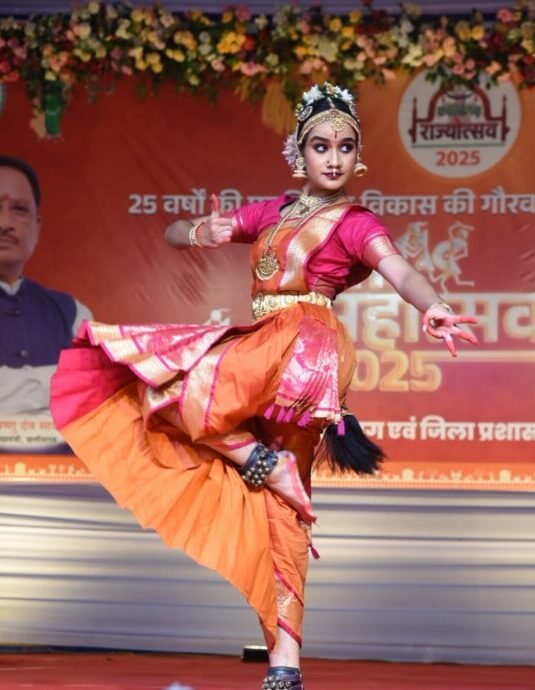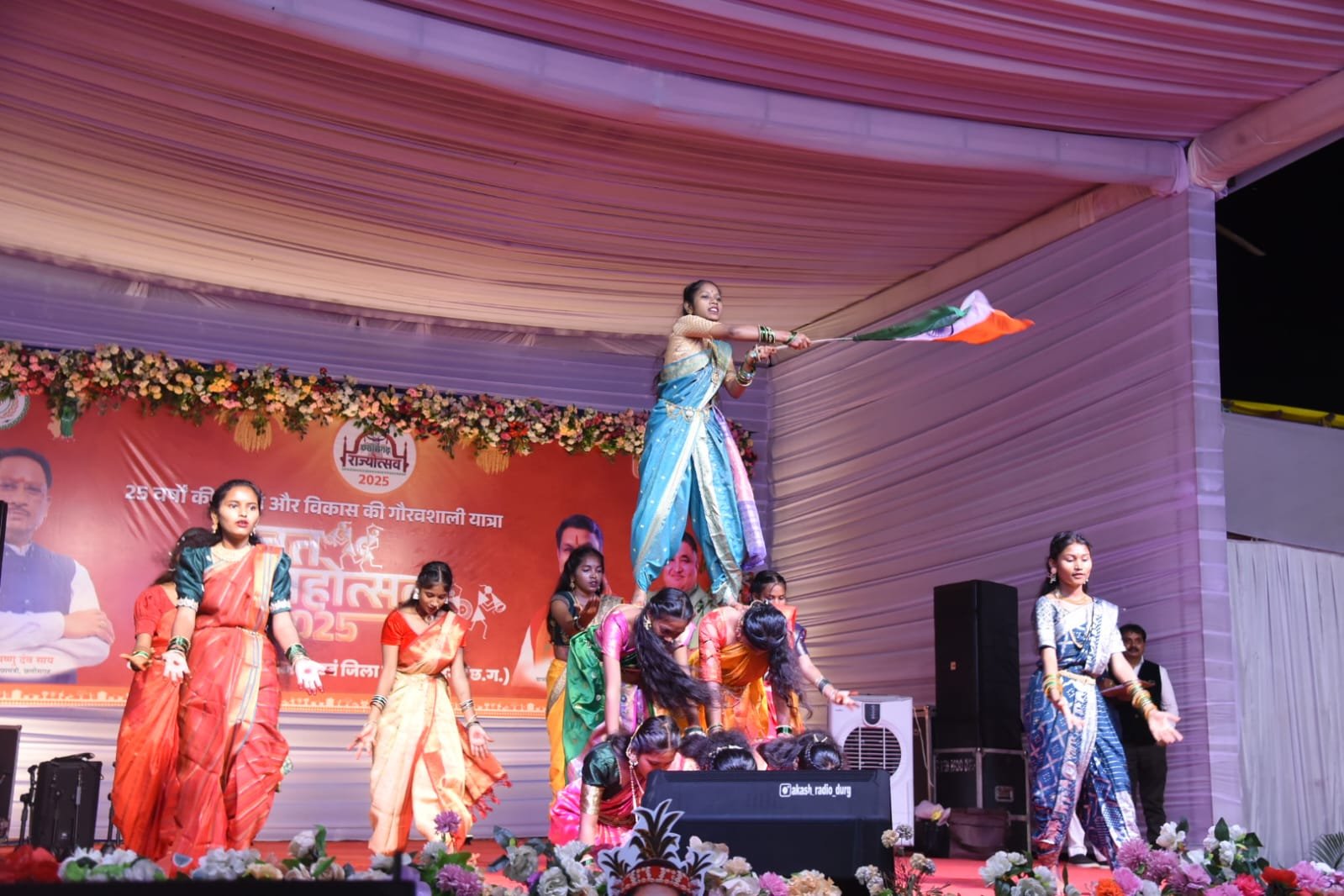 राज्योत्सव की संध्या में आयोजित सांस्कृतिक कार्यक्रम में कलाकारों ने छत्तीसगढ़ी लोकसंगीत और नृत्य के माध्यम से राज्य की समृद्ध सांस्कृतिक विरासत को प्रस्तुत किया। दर्शकों ने उत्साहपूर्वक कार्यक्रम का आनंद लिया। पूरा परिसर तालियों और जयघोषों से गूंज उठा। पूरे आयोजन में उल्लास, अनुशासन और छत्तीसगढ़ी आत्मीयता का वातावरण रहा।