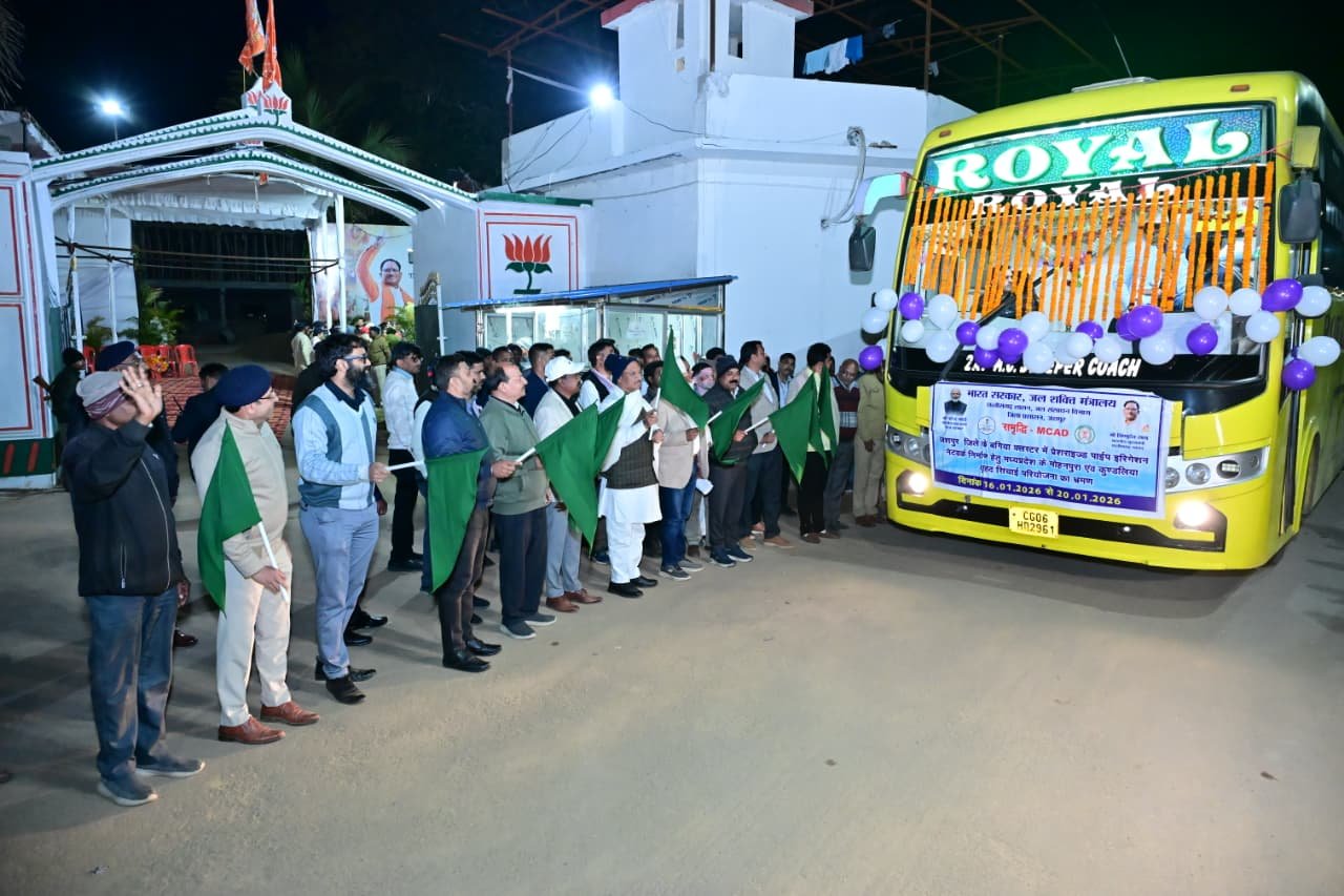 मुख्यमंत्री विष्णु देव साय ने जशपुर जिले में समृद्धि दृ कमांड क्षेत्र विकास एवं जल प्रबंधन आधुनिकीकरण (एमकैड) योजना के प्रभावी क्रियान्वयन की दिशा में एक और महत्वपूर्ण पहल की है। उन्होंने बगिया क्लस्टर में प्रस्तावित प्रेशराइज्ड पाइप इरिगेशन नेटवर्क निर्माण से पूर्व जिले के चयनित किसानों को 16 से 20 जनवरी 2026 तक मध्यप्रदेश की मोहनपुरा एवं कुंडलिया वृहद सिंचाई परियोजनाओं के अध्ययन भ्रमण के लिए विगत दिवस बगिया से रवाना किए। कलेक्टर के नेतृत्व में 13 गांव के 26 किसान एवं अधिकारी कर्मचारियों सहित कुल 49 सदस्य बस से बिलासपुर के लिए रवाना हुए। सभी सदस्य आज 11 बजे बिलासपुर से ट्रेन के माध्यम से मध्यप्रदेश के लिए रवाना होंगे। मुख्यमंत्री विष्णु देव साय ने अपने निज निवास बगिया से स्वयं किसानों को शुभकामनाएं देते हुए इस अध्ययन दल के बस को हरी झंडी दिखाकर रवाना किया। मुख्यमंत्री ने किसानों से चर्चा करते हुए कहा कि वे वहां की आधुनिक सिंचाई प्रणालियों, जल प्रबंधन तकनीकों, फसल पैटर्न और जल उपभोक्ता समितियों के कार्यप्रणाली का बारीकी से अवलोकन करें ताकि बगिया समृद्धि परियोजना को जिले का आदर्श मॉडल बनाया जा सके।