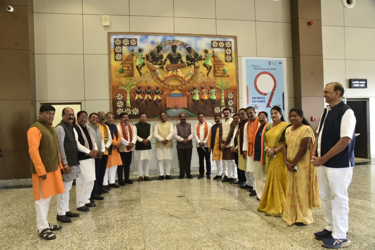 मुख्यमंत्री विष्णु देव साय का जगदलपुर एयरपोर्ट में किया गया आत्मीय स्वागत