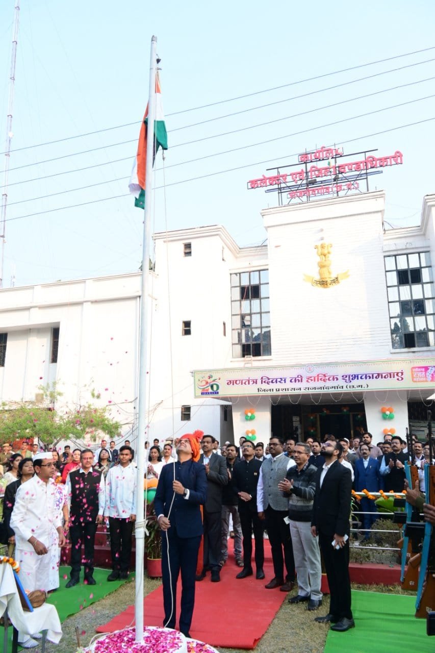 कलेक्टर जितेन्द्र यादव ने गणतंत्र दिवस के अवसर पर कलेक्टोरेट परिसर में राष्ट्रीय ध्वज फहराया। इस अवसर पर सामूहिक राष्ट्रगान किया गया। गणतंत्र दिवस के इस ध्वजारोहण कार्यक्रम में सभी विभागों के अधिकारी-कर्मचारी उपस्थित थे। कलेक्टर जितेन्द्र यादव ने कलेक्टोरेट परिसर में स्थापित छत्तीसगढ़ महतारी की प्रतिमा पर माल्यार्पण किया। साथ ही कलेक्टर ने राष्ट्रपिता महात्मा गांधी एवं संविधान निर्माता बाबा साहेब भीमराव अम्बेडकर की प्रतिमा पर पुष्प अर्पित कर उन्हें श्रद्धांजलि दी। कलेक्टर ने अधिकारियों एवं कर्मचारियों को गणतंत्र दिवस की हार्दिक बधाई एवं शुभकामनाएं दी।