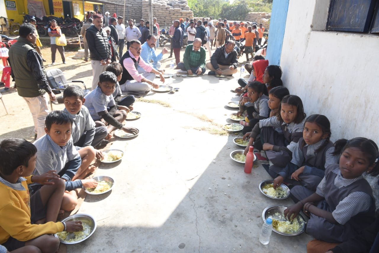 कलेक्टर  भोसकर बच्चों के साथ मध्यान्ह भोजन में शामिल हुए। उन्होंने छात्रों के साथ बैठकर भोजन किया और भोजन की गुणवत्ता, पोषण स्तर तथा परोसने की व्यवस्था का अवलोकन किया। कलेक्टर ने कहा कि मध्यान्ह भोजन बच्चों के स्वास्थ्य और नियमित उपस्थिति के लिए अत्यंत महत्वपूर्ण है, मध्यान्ह भोजन की गुणवत्ता में किसी भी प्रकार की कमी न हो संबंधित शिक्षकों को निर्देश दिए।