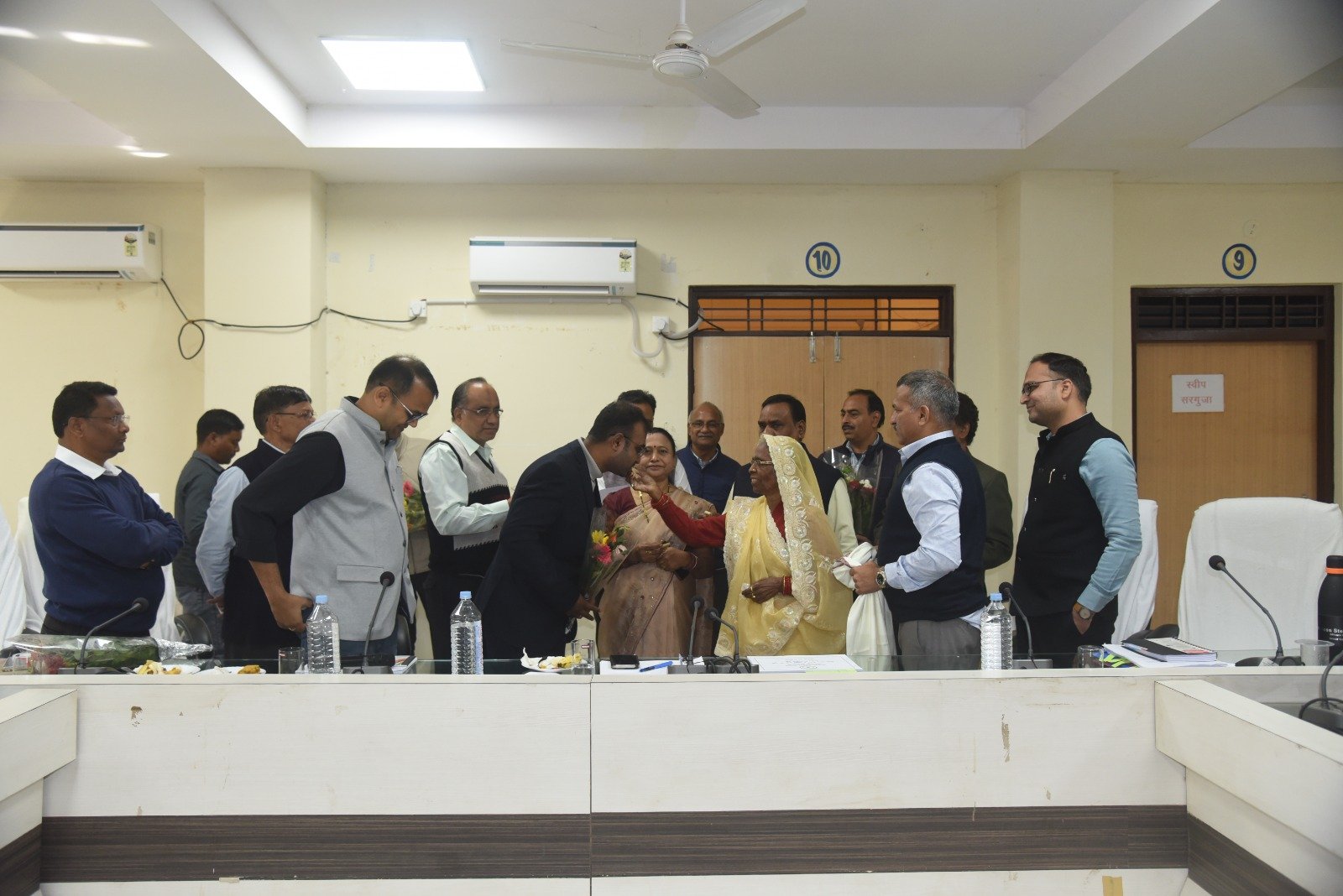 कलेक्टर विलास भोसकर ने मंगलवार को जिला कलेक्टरेट सभाकक्ष में छत्तीसगढ़ लोक सेवा आयोग परीक्षा 2024 में चयनित जिले के युवाओं को सम्मानित किया। कलेक्टर ने शॉल, श्रीफल भेंट कर उन्हें बधाई दी। उन्होंने सभी से परिचय लिया तथा नए दायित्व के बेहतर निर्वहन हेतु शुभकामनाएं दीं। इस दौरान युवाओं के माता- पिता एवं परिजन भी उपस्थित रहे। इस दौरान पीएससी परीक्षा में चयनित कुल 06 युवाओं को सम्मानित किया गया। इनमें सीतापुर के मयंक मंडावी (डिप्टी कलेक्टर), मैनपाट की चंचल पैंकरा (डिप्टी कलेक्टर), अम्बिकापुर के पंकज यादव (उप पुलिस अधीक्षक), सीतापुर के प्रसून गुप्ता (उप पुलिस अधीक्षक), सीतापुर की अनुजा बेक (आबकारी उप निरीक्षक), अम्बिकापुर के निखिल केसरी (राज्य कर निरीक्षक) शामिल हैं।