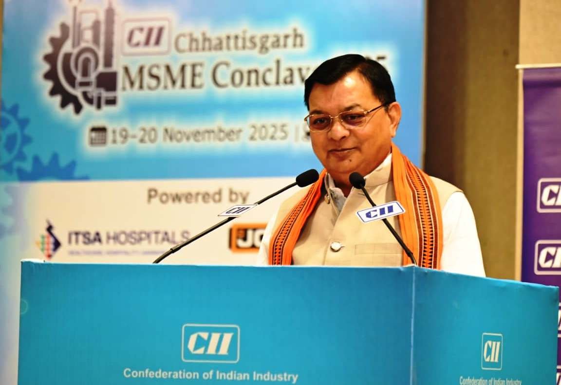 रायपुर, 20 नवम्बर 2025/वाणिज्य एवं उद्योग मंत्री श्री लखनलाल देवांगन ने आज राजधानी रायपुर में कॉन्फेडरेसन ऑफ इंडियन इंडस्ट्री (सीआईआई) द्वारा आयोजित छत्तीसगढ़ एमएसएमई कॉनक्लेव का शुभारंभ किया। इस अवसर पर श्री देवांगन ने कहा कि प्रदेश की नई औद्योगिक नीति से प्रदेश में बेहतर औद्योगिक वातावरण का निर्माण हो रहा है। जब नई औद्योगिक नीति तैयार हो रही थी उस समय देश के अन्य राज्यों की नीति का भी अध्ययन किया गया। मुख्यमंत्री श्री विष्णु देव साय के नेतृत्व में प्रदेश में अब 7 लाख 75 हजार करोड़ रूपए की निवेश प्रस्ताव प्राप्त हो चुके है। निश्चित तौर पर आप सबके सहयोग से छत्तीसगढ़ नया अध्याय लिखने जा रहा है, प्रदेश में नये उद्योग धंधें स्थापित होंगे तो यहां के लोगों को रोजगार मिलेगा। प्रदेश की नई औद्योगिक नीति में अनेक रियायतें दी गई है। उद्यमियों की सुविधा के लिए सिंगल विंडो प्रणाली लागू की गई है। ताकि किसी भी उद्योगपतियों को उद्योग लगानें में कठिनाई न हो। श्री देवांगन ने कहा कि यह छत्तीसगढ़ के लिए गर्व की बात है कि सूक्ष्म, लघु और मध्यम उद्यम मंत्रालय नई दिल्ली की संचालक सुश्री अंकिता पांडे छत्तीसगढ़ के बस्तर जिले के निवासी है। जो इस कार्यक्रम में शामिल हो रही है।
