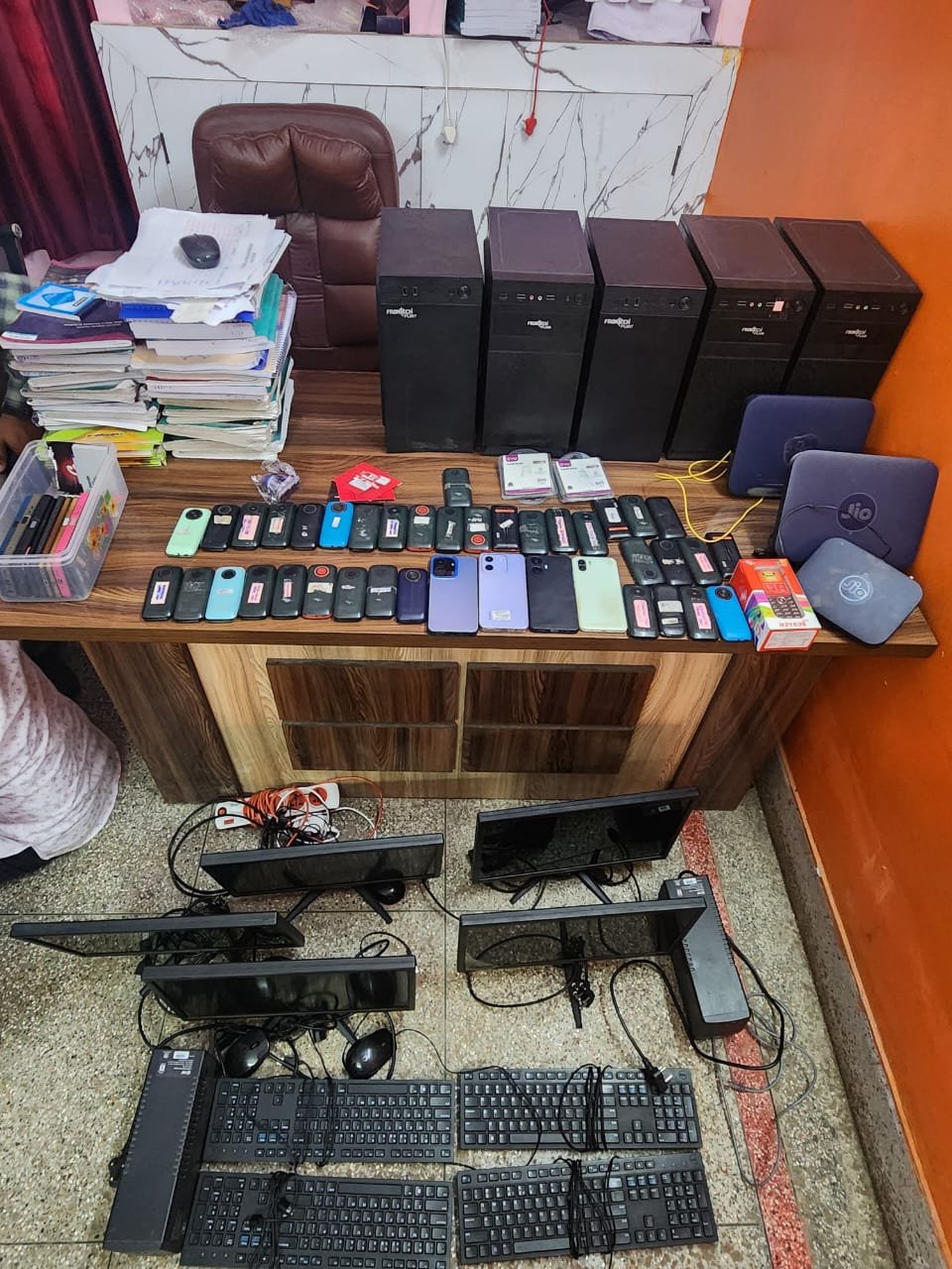 #गिरफ्तार आरोपियों से 50 मोबाइल, 10 डेस्कटॉप कंप्यूटर, सिम कार्ड, 60 बैंक अकाउंट कीट बरामद