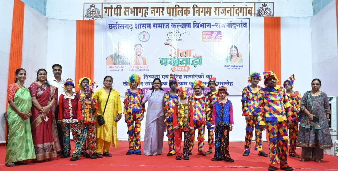 राजनांदगांव 29 सितम्बर 2025। सेवा पखवाड़ा अंतर्गत समाज कल्याण विभाग द्वारा गांधी सभागृह राजनांदगांव में दिव्यांगजनों के लिए सांस्कृतिक कार्यक्रम पुरस्कार वितरण, सहायक उपकरण वितरण एवं सम्मान समारोह का आयोजन किया गया। कार्यक्रम में जिला पंचायत अध्यक्ष श्रीमती किरण वैष्णव, जिला पंचायत सदस्य श्रीमती जागृति साहू, श्रीमती देवकुमारी साहू व श्रीमती किरण बारले, पूर्व जनपद सदस्य श्रीमती मीना पुरेरी, मुख्य कार्यपालन अधिकारी जिला पंचायत सुश्री सुरूचि सिंह, नगर निगम पार्षद व चेयरमेन स्वास्थ्य विभाग श्री शैंकी बग्गा, नियामत हुद्दा एवं अन्य जनप्रतिनिधि उपस्थित थे। जिला पंचायत अध्यक्ष श्रीमती किरण वैष्णव शासन द्वारा दिव्यांगजनों के लिए चलाए जा रहे विभिन्न कार्यक्रमों एवं योजनाओं की जानकारी दी। उन्होंने कहा कि दिव्यांगजनों के लिए इस तरह के कार्यक्रम एवं शिविरों का आयोजन होते रहना चाहिए। उन्होंने कार्यक्रम के आयोजन के लिए समाज कल्याण विभाग की सराहना की। मुख्य कार्यपालन अधिकारी जिला पंचायत सुश्री सुरूचि सिंह ने सेवा पखवाड़ा अन्तर्गत समाज कल्याण विभाग द्वारा दिव्यांग एवं बुजुर्गों के लिए किए जा रहे कार्यों की प्रशंसा की।