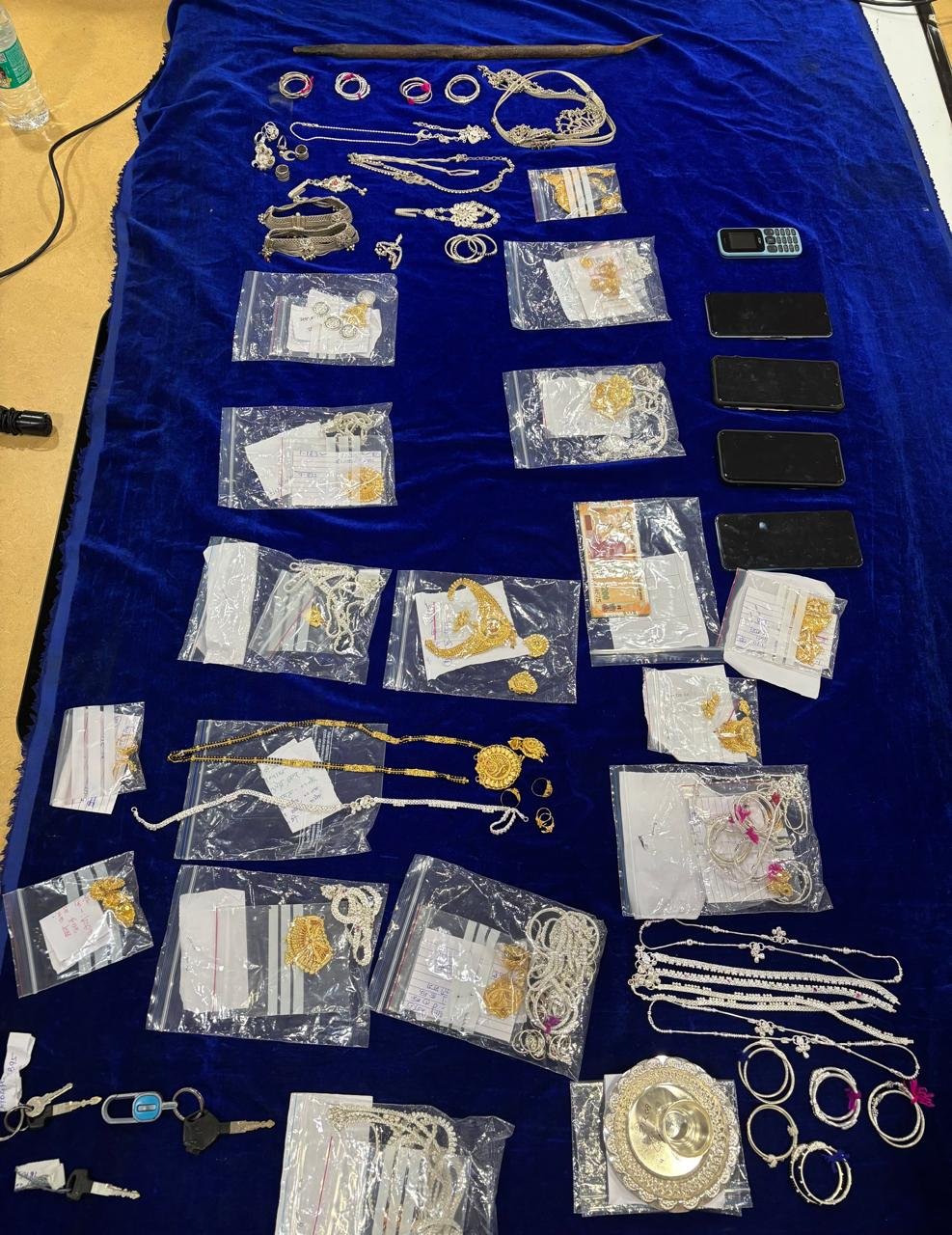 सभी गिरफ्तार आरोपियों के निशानदेही पर उनके *कब्जे से 260.585 ग्राम (26.50 तोला) सोना, 01 किलो 634 ग्राम चांदी घटना प्रयुक्त 05 नग मोबाईल फोन, 05 नग दोपहिया वाहन (जिसमें 01 नग दोपहिया वाहन आरोपियों द्वारा चोरी के पैसो से क्रय किया गया है) एवं अन्य आलाजरब जुमला कीमती लगभग 30,10,000/- रूपये जप्त* कर आरोपियों के विरूद्ध धारा 331(4), 305, 3(5) बी.एन.एस. के तहत कार्यवाही किया गया है।