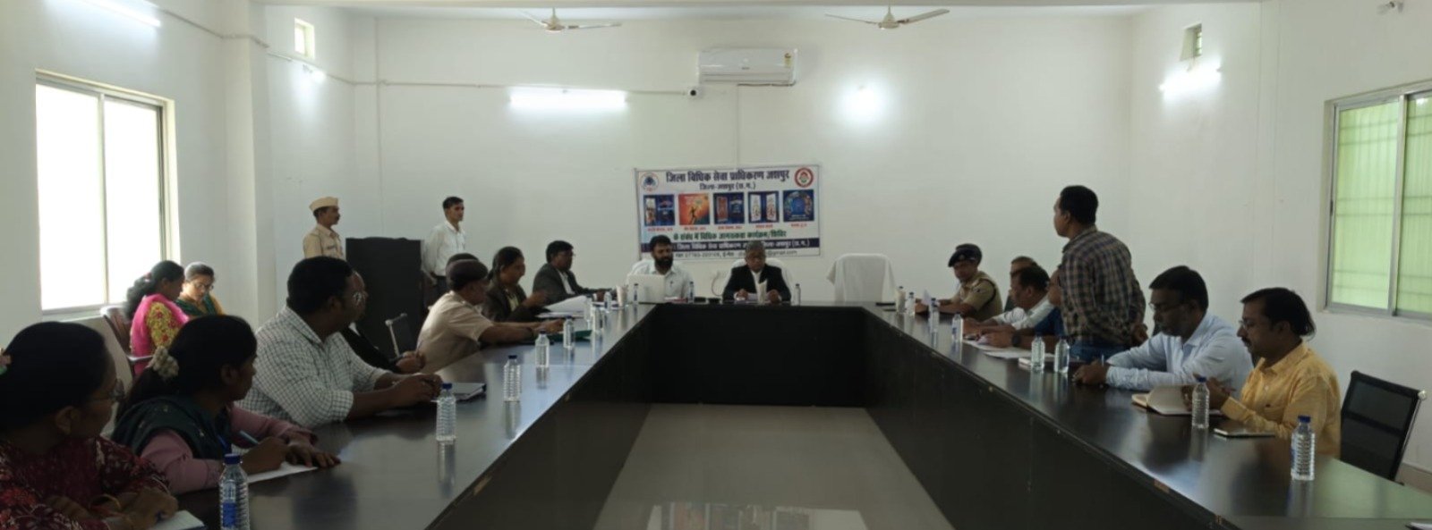 बैठक में यूटीआरसी के अंतर्गत एजेंडा व मिनट्स, जिला एवं तालुका स्तर पर पार्किंग हेतु स्टैण्ड, भवनों में सीपेज, विद्युत, सिविल, साफ-सफाई. स्ट्रीट लाईट, पानी, नोटिस व समंस तामिली आदि की समस्याओं एवं बाल विवाह की समस्या से निपटने के लिये एक संस्थागत ढांचा तैयार कर, बाल विवाह की प्रथा का उन्मूलन करना, पीड़िताओं को शासन की कल्याणकारी योजनाओं का लाभ प्रदान कराते हुये समाज की मुख्य धारा से जोड़ने, जमीनी स्तर पर निःशुल्क विधिक सहायता का प्रचार-प्रसार करना एवं शासन की योजनाओं का लाभ प्रदान करने, नशे से पीडित व्यक्ति को नशे से मुक्ति हेतु नशा मुक्ति केन्द्र जाने हेतु प्रोत्साहित करने, नेशनल नारकोटिक्स हेल्पलाईन नंबर 1933 एवं 14446 एवं नालसा हेल्पलाईन नंबर 15100 का प्रचार प्रसार करने, स्कूल कॉलेज, सडकों पर रहने वाले बच्चे, सेक्स वर्कर, जेल, किशोर गृह, केमिस्ट, ड्रग पीड़ित व्यक्ति एवं उनके परिवारों, आम जनता के मध्य जागरूकता कार्यक्रम के संबंध में विस्तार से चर्चा की गई।