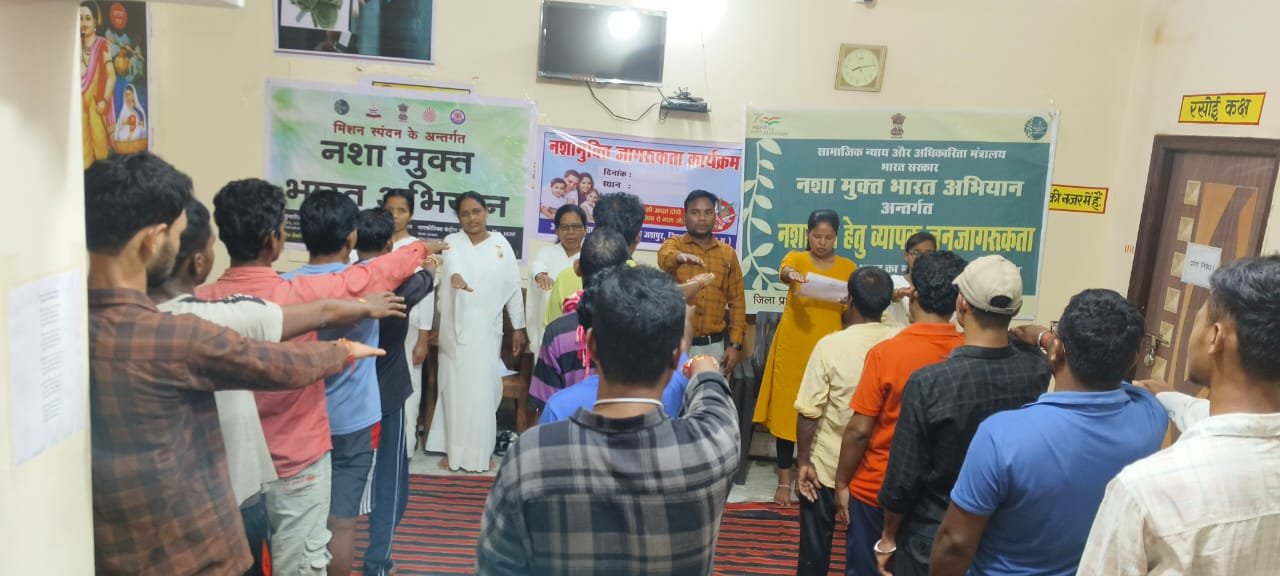 शपथ समारोह में समाज कल्याण जशपुर के कर्मचारी द्वारा जिले में संचालित 15 बिस्तरीय नशा मुक्ति एवं पुनर्वास केन्द्र जशपुर में दी जा रही सुविधाओं के बारे में कहा कि संस्था में निशुल्क भोजन, आवास, योग, चिकित्सीय परामर्श एवं मनोरंजन प्रदान किया जाता है। प्रजापिता ब्रह्माकुमारी ईश्वरीय विश्वविद्यालय के बहनों ने बीड़ी, सिगरेट, गुटखा, शराब, पान-मसाला, अफीम, गांजा, चरस, कोकीन, हेरोइन, एवं ब्राउन शुगर इत्यादि चीजों से होने वाले दुष्प्रभावों पर संक्षिप्त व्याख्यान दिया। इस कार्यक्रम में समाज कल्याण विभाग के सहायक अधीक्षक श्री वेद प्रकाश कुलदीप, ब्रह्माकुमारी संस्था केे नीलम, रुक्मणी, संगीता, कुमारी श्यामा, ब्रह्माकुमार सूरज और नशा मुक्ति केन्द्र जशपुर के संस्था संचालक श्री प्रभाकर द्विवेदी एवं संस्था के कर्मचारी गण उपस्थित रहें।