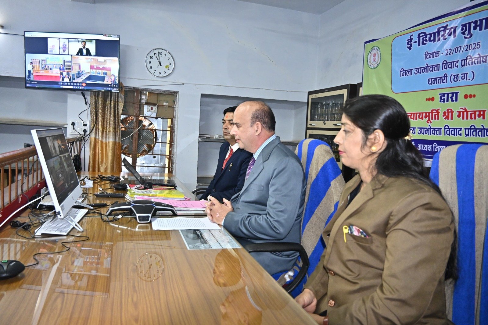 धमतरी । जिला उपभोक्ता आयोग, धमतरी में ई-हियरिंग की सुविधा का विधिवत शुभारंभ आज माननीय न्यायमूर्ति श्री गौतम चौरड़िया, अध्यक्ष, छत्तीसगढ़ राज्य उपभोक्ता आयोग द्वारा वर्चुअल फीता काटकर किया गया। यह अवसर छत्तीसगढ़ राज्य के लिए एक गौरवपूर्ण क्षण रहा, क्योंकि छत्तीसगढ राज्य, जिला उपभोक्ता आयोग के स्तर पर ई-हियरिंग प्रारंभ करने वाला देश का प्रथम राज्य बन गया है।