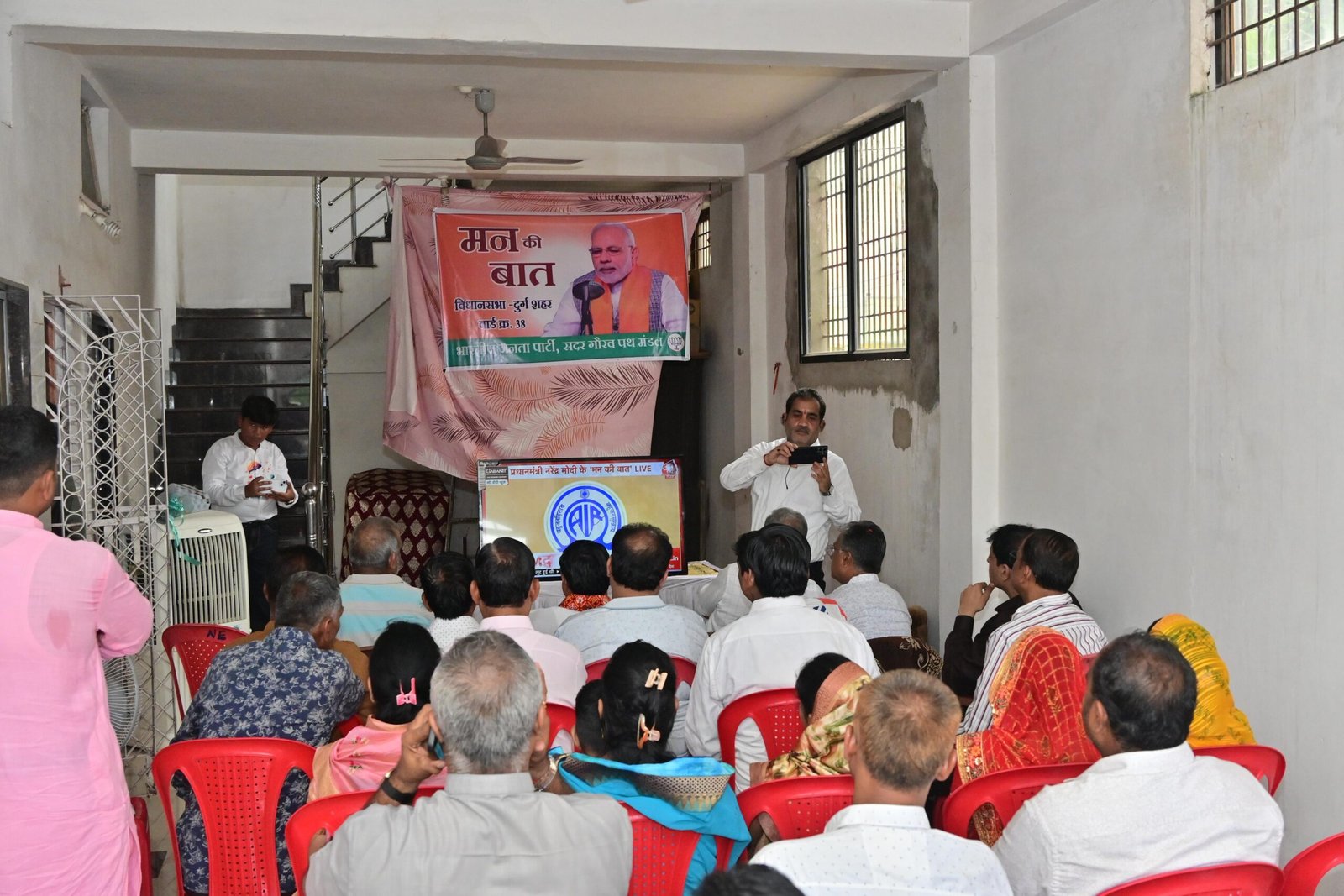 रायपुर, 28 सितंबर 2025/ प्रधानमंत्री नरेंद्र मोदी ने रविवार को मन की बात कार्यकम के 126 वें एपिसोड को संबोधित किया। शिक्षा मंत्री गजेन्द्र यादव ने वार्ड 38 खंडेलवाल कॉलोनी में दुर्ग भाजपा परिवार के साथ मन की बात सुनी। मन की बात सुनने आए क्षेत्रवासियों को केंद्र सरकार के जनकल्याणकारी योजनाओं की जानकारी भी मिली।