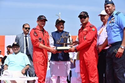 उप राष्ट्रपति सी.पी. राधाकृष्णन, राज्यपाल  रमेन डेका, मुख्यमंत्री विष्णु देव साय और विधानसभा अध्यक्ष डॉ. रमन सिंह ने देखा एयर शो