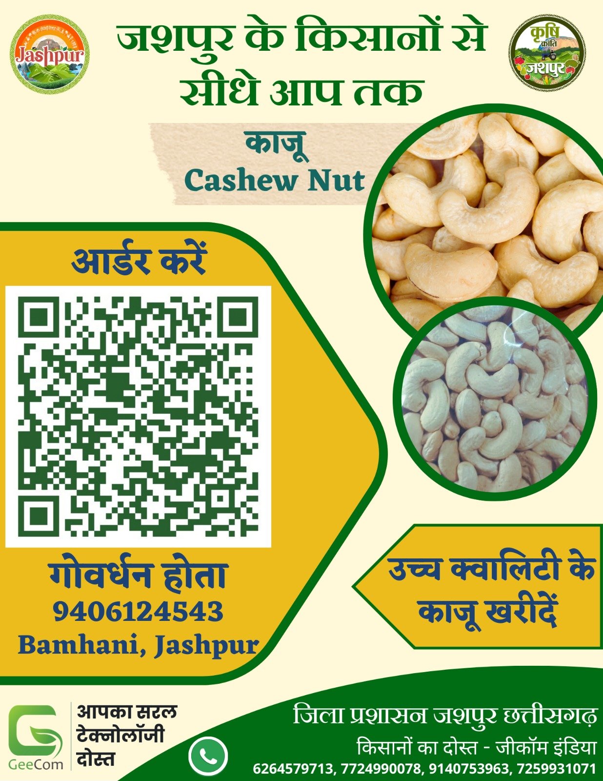 जशपुरनगर 06 नवंबर 2025/ जिला प्रशासन द्वारा प्रारंभ कृषि क्रांति अभियान अंतर्गत क्यू आर आधारित मार्केटिंग की शुरुआत की गई है जिसमे जिले के उत्पाद को देश में पहचान मिलने के साथ ही किसानों की आय में वृद्धि हो रही है। जिले में कृषि विविधता की अपार सम्भावना है किन्तु दूरस्थ वनांचल जिला होने और महानगरों से दूरी के कारण किसान अपने उत्पाद को उचित मूल्य पर विक्रय करने पर कठिनाइयां होती थी। इस अभियान के तहत जिले के 780 किसानों के विभिन्न उत्पादों का पंजीयन पूर्ण हो चुका है। किसानों के रिटेल मार्केटिंग को आसान बनाने के लिए प्रत्येक किसान के उत्पादों का विशेष क्यू आर निर्मित किया गया है। जिले के किसान स्वयं से जिला प्रशासन से संपर्क कर लाभ पर अवगत करा रहे है।
