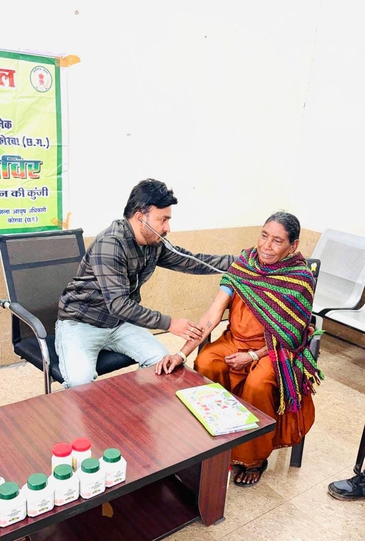 कलेक्टर   कुणाल दुदावत के मार्गदर्शन में आयुष विभाग  द्वारा कोरबा नगर के स्नेह सदन वृद्धाश्रम मे निःशुल्क चिकित्सा शिविर का आयोजन किया गया। शिविर में  सभी वृद्ध जनों को विभिन्न जांच करते हुए  चिकित्सा लाभ पहुँचाया गया एवं उन्हें आवश्यक दवाइयां, च्वनप्राश वितरित की गई। साथ ही रोग मुक्त रहने के लिए नियमित योग करने एवं खान पान पर विशेष ध्यान देने हेतु जागरूक किया गया।