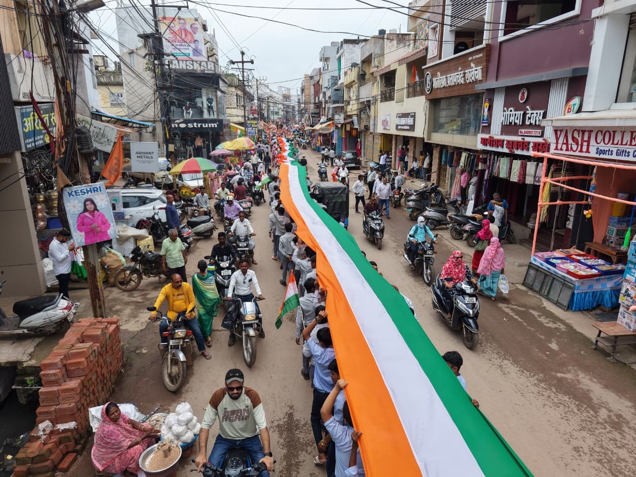 धमतरी 13 अगस्त 2025/ हर घर तिरंगा के तहत देशभक्ति से भरपूर आज धमतरी शहर में एक हजार मीटर तिरंगे के साथ रैली निकाली गई। इस रैली में महापौर श्री रामू रोहरा, स्थानीय जनप्रतिनिधि सहित स्कूली बच्चों ने बढ़-चढ़कर हिस्सा लिया। इसके साथ ही नशामुक्ति का भी संदेश दिया गया। यह कोई साधारण यात्रा नहीं, बल्कि राष्ट्रप्रेम और समाज के प्रति जिम्मेदारी का जीवंत प्रमाण था। यह रैली घड़ी चौक से शुरू होकर मुख्य मार्गों से होते हुए चमेली चौक से गुजरते हुए गई। इस दौरान देशभक्ति के गीत, भारत माता की जय और वंदे मातरम की उद्घोष से पूरा वातावरण गूंज उठा। हाथों में तिरंगा लहराते बच्चों का जोश देखते ही बन रहा था।