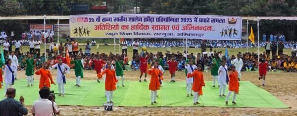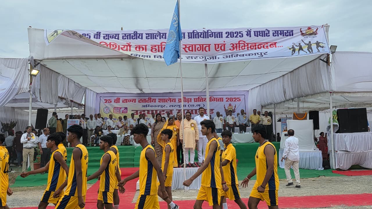 अम्बिकापुर । छत्तीसगढ़ शासन स्कूल शिक्षा विभाग द्वारा आयोजित 25वीं राज्य स्तरीय खेलकूद प्रतियोगिता 2025 का आज भव्य शुभारंभ अंबिकापुर के मल्टीपरपज स्कूल मैदान में हुआ। चार दिवसीय यह खेल महाकुंभ 28 से 31 अक्टूबर तक आयोजित होगा, जिसमें प्रदेश के विभिन्न संभागों से दुर्ग, रायपुर, बस्तर, बिलासपुर और मेजबान सरगुजा की टीमें भाग ले रही हैं।