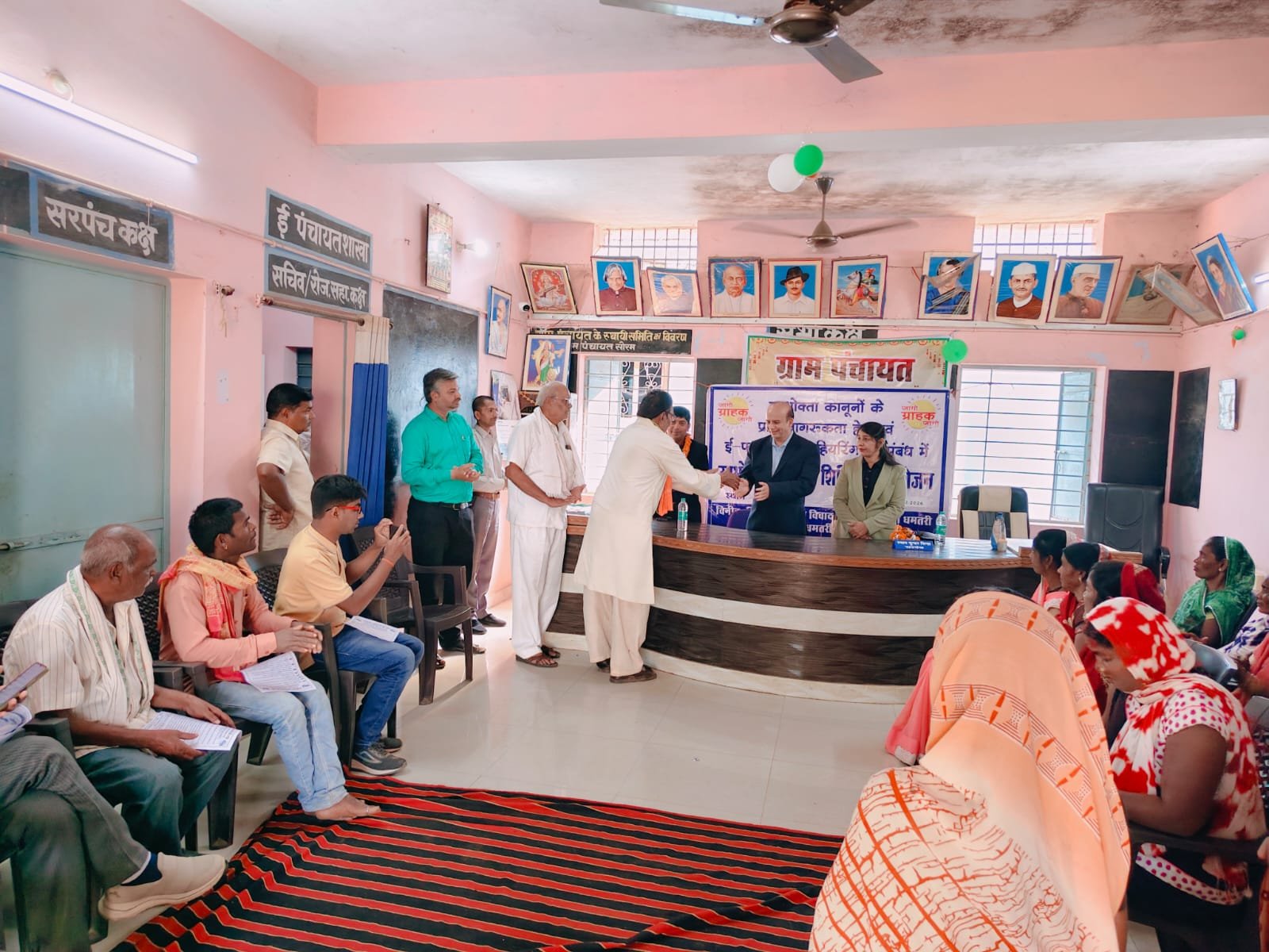 ग्रामीणों ने इस मौके पर फसल बीमा, अन्य कृषि उपकरण एवं खाद बीज के संबंध में जानकारी ली गई। कार्यक्रम में जिला उपभोक्ता आयोग, धमतरी के सदस्य अरविन्द सिंह परिहार द्वारा ई-जागृति पोर्टल व ई-हियरिंग के संबंध में भी जानकारी प्रदान की गई। उक्त कार्यक्रम में पूर्व जनपद सदस्य रामेश्वर प्रसाद साहू, ग्राम सरपंच श्याम सुंदर सिन्हा, उपसरपंच नरेन्द्र कुमार साहू, सचिव अभिषेक तिवारी, पंच क्रमशः गोवर्धन निषाद, हेमलता साहू, कौशिल्या साहू, अनिल यादव, ईश्वरी मारकडे, हेमलाल, रामरानी यादव सुखवन्तिन ध्रुव, पुरुषोत्तम साहू, गोदावरी निषाद, त्रिवेणी साहू, खेमीन साहू, मन्नु साहू, महादेव ध्रुव एवं समस्त ग्रामीण जन तथा जिला उपभोक्ता आयोग धमतरी के कर्मचारी सतीश मेनन व नवीन जायसवाल भी उपस्थित रहे।