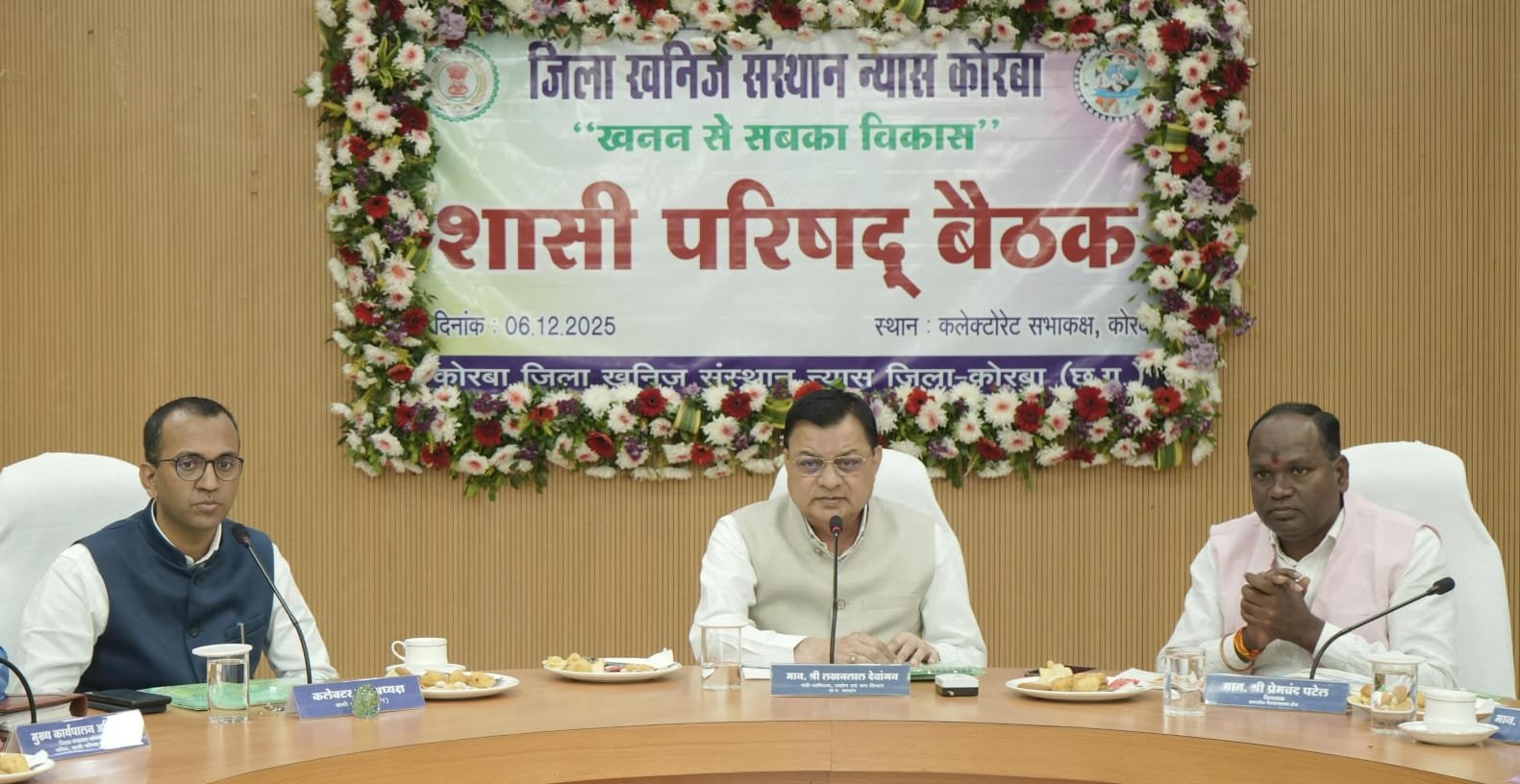 छत्तीसगढ़ शासन के वाणिज्य, उद्योग, आबकारी, सार्वजनिक उपक्रम एवं श्रम मंत्री लखनलाल देवांगन के मुख्य आतिथ्य में आज कलेक्ट्रेट सभाकक्ष में जिला खनिज संस्थान न्यास कोरबा की शासी परिषद की बैठक आयोजित हुई। बैठक में वित्तीय वर्ष 2025-26 के दौरान स्वीकृत कार्यों की प्रगति, किए गए कार्यों की कार्योत्तर स्वीकृति तथा आगामी वित्तीय वर्ष की कार्ययोजना को अनुमोदन हेतु प्रस्तुत किया गया। इस अवसर पर विधायक कटघोरा प्रेमचंद पटेल, विधायक पाली-तानाखार क्षेत्र तुलेश्वर सिंह मरकाम, विधायक रामपुर के प्रतिनिधि, जिला पंचायत अध्यक्ष डॉ. पवन कुमार सिंह, महापौर संजू देवी राजपूत सहित अन्य जनप्रतिनिधि उपस्थित रहे, जबकि पदेन अध्यक्ष कलेक्टर अजीत वसंत, वनमंडलाधिकारी कोरबा प्रेमलता यादव, कटघोरा के डीएफओ कुमार निशांत, आयुक्त नगर निगम आशुतोष पांडेय, जिला पंचायत सीईओ दिनेश नाग, सांसद-विधायक प्रतिनिधि, अपर कलेक्टर देवेन्द्र पटेल, संयुक्त कलेक्टर माधुरी सोम, एसडीएम कोरबा सरोज महिलांगे सहित अन्य विभागीय अधिकारी बैठक में सम्मिलित हुए।