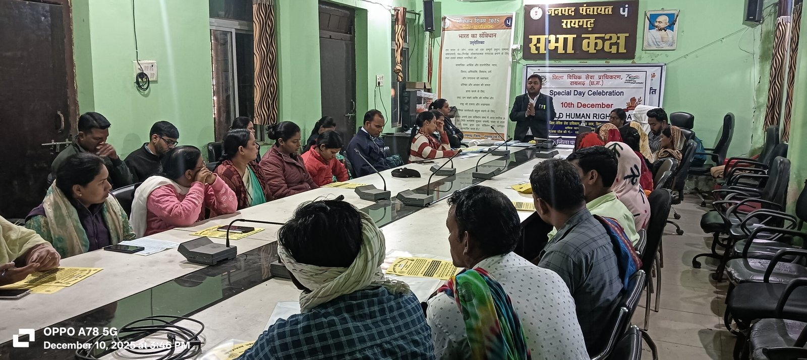 राष्ट्रीय विधिक सेवा प्राधिकरण नई दिल्ली एवं छ.ग. राज्य विधिक सेवा प्राधिकरण बिलासपुर के निर्देशन में प्रधान जिला न्यायाधीश एवं अध्यक्ष श्री जितेन्द्र कुमार जैन के मार्गदर्शन तथा जिला विधिक सेवा प्राधिकरण रायगढ़ न्यायाधीश/सचिव श्रीमती अंकिता मुदलियार के नेतृत्व में विश्व मानव अधिकार दिवस के अवसर पर जनपद पंचायत रायगढ़ में विधिक जागरूकता शिविर का आयोजन किया गया।