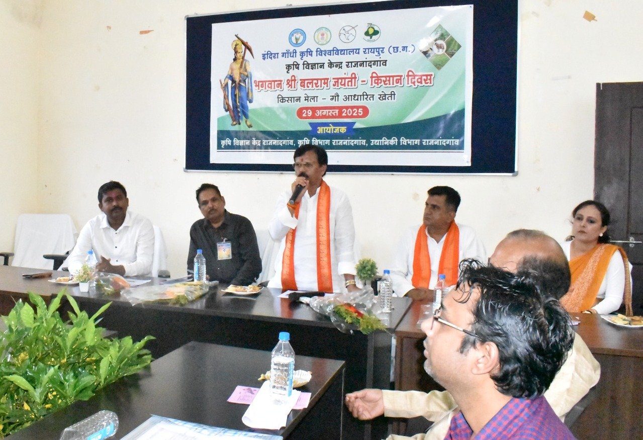 राजनांदगांव 29 अगस्त 2025। कृषि विज्ञान केन्द्र सुरगी राजनांदगांव में भगवान श्री बलराम जयंती सह एक दिवसीय किसान दिवस कार्यक्रम का आयोजन किया गया। इस अवसर पर भगवान बलराम, छत्तीसगढ़ महतारी, हल, मूसल एवं अन्य पारंपरिक कृषि यंत्रों की पूजा अर्चना कर कृषकों की अच्छी उपज की कामना की गई। कार्यक्रम में समाज सेवी श्री कोमल सिंह राजपूत ने किसानों को पारंपरिक एवं प्राकृतिक खेती हेतु प्रोत्साहित किया। इस अवसर पर पारंपरिक खेती के सम्बन्ध में व्याख्यान दिया गया एवं प्राकृतिक खेती के विभिन्न घटकों बीजामृत, जीवामृत, घन-जीवामृत एवं कीट नियंत्रण हेतु नीमास्त्र बनाने की विधियों का जीवंत प्रदर्शन किया गया। इस दौरान किसानों को विभिन्न गतिविधिओं के माध्यम से कृषकों को प्राकृतिक खेती के सम्बन्ध में जागरूक किया गया। इस अवसर पर श्री हिरेन्द्र साहू, श्री ईश्वर चंद श्रीवास्तव, श्री राजा माखीजा, श्री अभिषेक चंद्राकर, कृषि विज्ञान केन्द्र सुरगी की वरिष्ठ वैज्ञानिक एवं प्रमुख डॉ. गुंजन झा सहित श्रीमती अंजली घृतलहरे, डॉ. अतुल डांगे, डॉ. नूतन रामटेके, श्री मनीष कुमार सिंह, डॉ. योगेंद्र श्रीवास, प्रक्षेत्र प्रबंधक श्री आशीष गौरव शुक्ला, ग्रामीण कृषि विस्तार अधिकारी श्रीमती सुशीला रामटेके सहित बड़ी संख्या में बड़ी संख्या में कृषक उपस्थित थे।