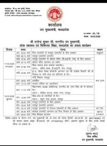 आज 17 मार्च को वो छत्तीसगढ़ प्रवास में है आज मंगलवार की शाम 7 बजे राजधानी रायपुर पहुंचकर तेलीबांधा vip रोड स्थित श्री राम मंदिर जायेगे और दर्शन कर विंध्या समाज के एक सम्मान समारोह कार्यक्रम में शामिल होगे । रात्रि भोजन संजीव तिवारी के निवास में करेंगे और परिजनों से मिलेंगे दूसरे दिन18 मार्च को वो विधानसभा अध्यक्ष डॉक्टर रमन सिंह से सौजन्य भेंट करेंगे,