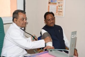 मुख्यमंत्री विष्णुदेव साय ने शिविर में स्वयं स्वास्थ्य जांच कराकर स्वास्थ्य के प्रति जागरूकता का सशक्त संदेश दिया। उन्होंने कहा कि वर्तमान जीवनशैली में शारीरिक गतिविधियों में कमी आने के कारण विभिन्न प्रकार की बीमारियां तेजी से बढ़ रही हैं, ऐसे में नियमित स्वास्थ्य जांच अत्यंत आवश्यक हो गई है।
