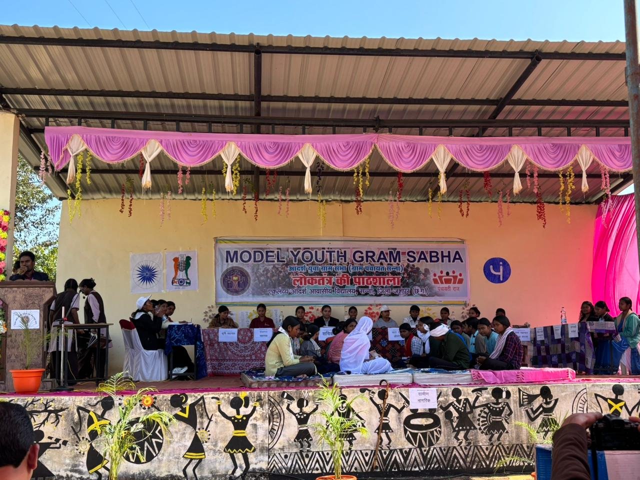 एकलव्य आदर्श आवासीय विद्यालय सन्ना में मंगलवार को आदर्श युवा ग्राम सभा का उत्साहपूर्ण एवं प्रेरणादायक आयोजन किया गया। ग्राम विकास की वास्तविक प्रक्रिया को समझाने और छात्रों में नेतृत्व क्षमता बढ़ाने के उद्देश्य से आयोजित इस ग्रामसभा में छात्राओं ने ग्राम पंचायत की भूमिकाएं निभाकर न केवल जनभागीदारी का परिचय दिया, बल्कि ग्राम प्रशासन की कार्यप्रणाली का व्यवहारिक अनुभव भी प्राप्त किया। कार्यक्रम का संचालन संगती शिक्षक श्री भोज कुमार के द्वारा किया गया।