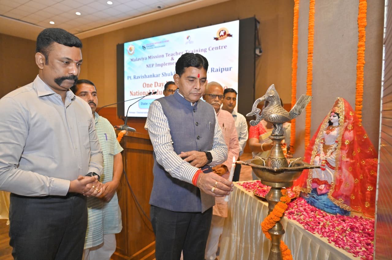 रायपुर, 24 सितम्बर 2025/उच्च शिक्षा मंत्री श्री टंक राम वर्मा ने नई शिक्षा नीति 2020 पर आजपं. रविशंकर शुक्ल विश्वविद्यालय, रायपुर में मालवीया मिशन टीचर ट्रेनिंग सेंटर एवं एनईपी इम्प्लीमेंटेशन सेल के संयुक्त तत्वावधान में राष्ट्रीय शिक्षा नीति-2020 पर एक दिवसीय कार्यशाला का आयोजन किया गया। विश्वविद्यालय सभागार में आयोजित इस कार्यशाला में उच्च शिक्षा मंत्री श्री टंक राम वर्मा ने कहा कि राष्ट्रीय शिक्षा नीति-2020 देश की शिक्षा व्यवस्था को नई दिशा और दृष्टि देने वाली है। यह नीति न केवल विद्यार्थियों के सर्वांगीण विकास पर बल देती है बल्कि इसमें कौशल विकास, रोजगारपरक शिक्षा और अनुसंधान को भी प्राथमिकता दी गई है। उन्होंने कहा कि नई शिक्षा नीति से उच्च शिक्षा संस्थानों को अकादमिक उत्कृष्टता प्राप्त करने का अवसर मिलेगा और युवाओं का भविष्य और भी उज्ज्वल होगा। सरकार निरंतर प्रयासरत है कि प्रदेश का प्रत्येक युवा गुणवत्तापूर्ण शिक्षा प्राप्त करे और अपनी प्रतिभा के बल पर समाज और राष्ट्र के विकास में योगदान दे।
