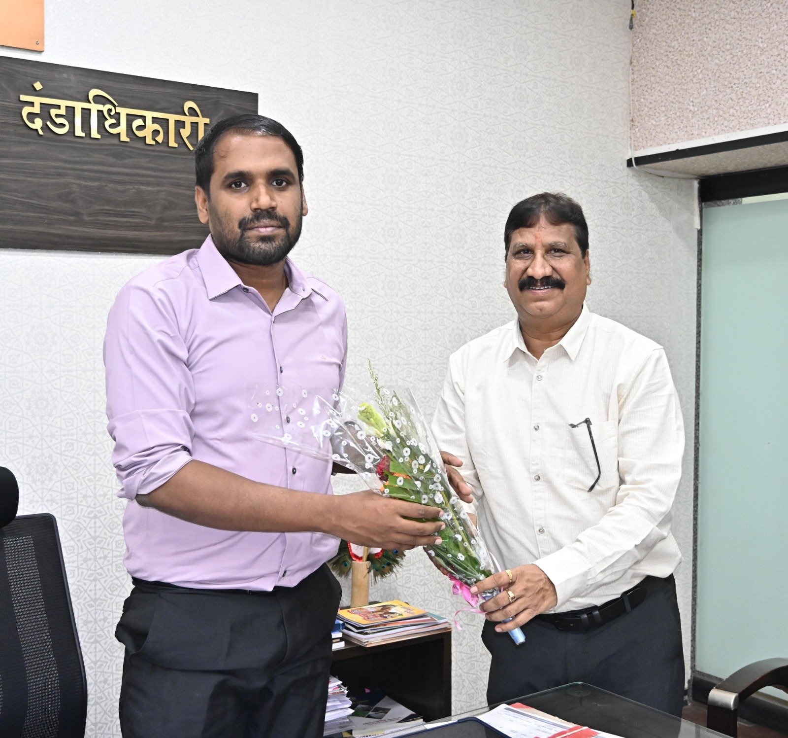 धमतरी । नवपदस्थ उप संचालक, जनसंपर्क श्री शशिरत्न पाराशर ने आज सोमवार को जनसंपर्क कार्यालय, धमतरी में अपने नवीन पदस्थापना पर उप संचालक के रूप में कार्यभार ग्रहण किया। पदभार ग्रहण करने के उपरांत श्री पाराशर ने कलेक्ट्रेट पहुँचकर कलेक्टर श्री अबिनाश मिश्रा से सौजन्य भेंट की। उन्होंने जिले में जनसंपर्क व्यवस्था को और अधिक सशक्त एवं प्रभावी बनाने के लिए आवश्यक मार्गदर्शन और सहयोग का आग्रह किया।