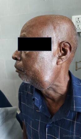मरीज का कैंसर से गले में उपस्थित लिंफ नोड में सूजन काफी बड़ा हो गया था। जांच में कैंसर की अंतिम स्टेज से ग्रसित होने की पुष्टि हो गई। दंत चिकित्सा विभाग के चिकित्सकों ने सर्जरी का निर्णय लिया, इलाज के लिए आवश्यक खून जांच एक्स-रे और सिटी स्केन कराकर 7-8 घंटे की जटिल सर्जरी पूरा किया गया। इस सर्जरी को तीन भागों में किया गया। इसमें कैंसर के साथ संक्रमित जबड़े के हिस्से को निकाला गया। कैंसर जो गर्दन में फैल गया था, उसको निकाला गया और अंत में कैंसर को निकालने के बाद खाली जगह पर छाती से मांस जिसे पीएमएमसी फ्लैप कहते हैं, का टुकड़ा निकालकर सर्जरी पूरी की गई।