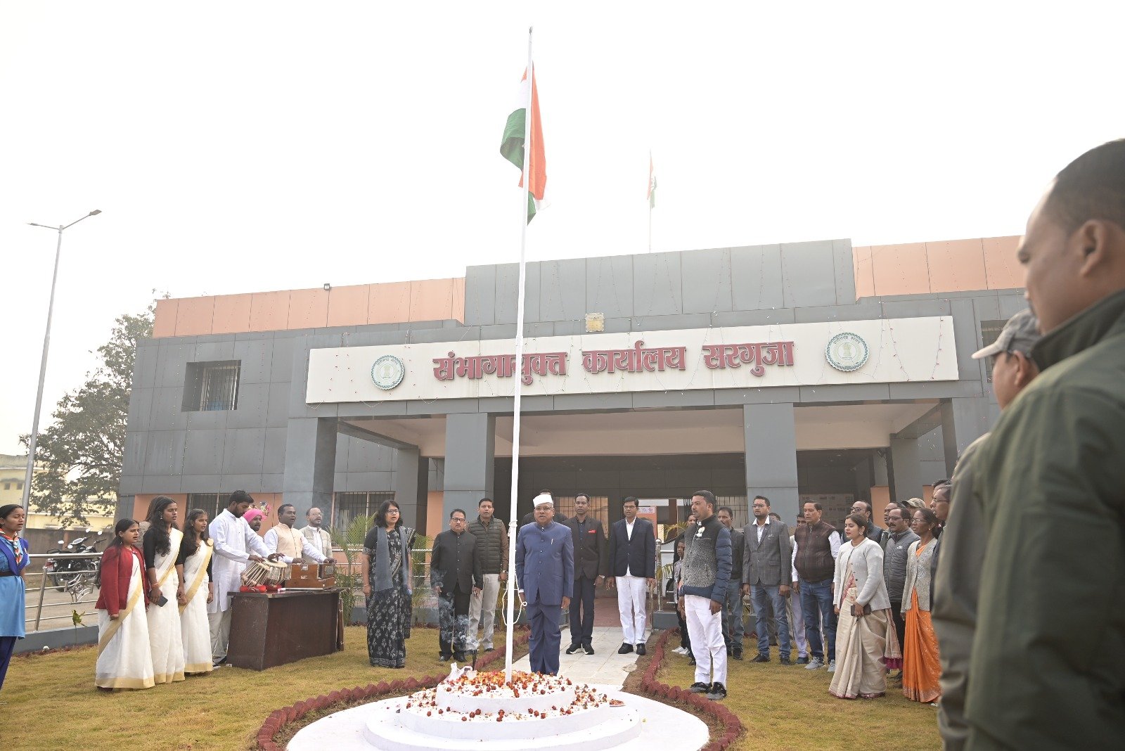 77वें गणतंत्र दिवस के अवसर पर जिला कलेक्टोरेट परिसर में कलेक्टर अजीत वसंत द्वारा प्रातः 7ः30 बजे राष्ट्रीय ध्वज फहराया गया। राष्ट्रपिता महात्मा गांधी की प्रतिमा पर कलेक्टर वसंत सहित जिला अधिकारियों द्वारा माल्यार्पण कर नमन किया गया तथा राष्ट्रगान गाया गया। कलेक्टोरेट सभाकक्ष में कलेक्टर वसंत ने सभी उपस्थित अधिकारियों, कर्मचारियों को गणतंत्र दिवस की शुभकामनाएं दीं। उन्होंने कहा कि आम नागरिक जो अपेक्षाएं लेकर आते हैं उन्हें कैसे पूरा करना है, ये हमें चिंतन करना चाहिए। शासन की योजनाओं में सरगुजा जिले का प्रदर्शन सर्वोत्तम रहेगा इस ओर कार्य करें। राष्ट्र निर्माण में यही हमारा योगदान है। उन्होंने सभी को कर्तव्य के प्रति ईमानदार रहते हुए निष्ठापूर्वक ढंग से कार्य करने प्रेरित किया। इस अवसर पर जिला पंचायत सीईओ श्री विनय अग्रवाल, अपर कलेक्टर सुनील नायक, एएल ध्रुव, सहित कलेक्ट्रेट कार्यालय के अधिकारी- कर्मचारी उपस्थित रहे।