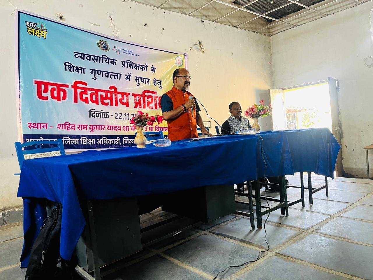 हमर लक्ष्य अभियान के तहत जिला स्तर पर शहीद रामकुमार यादव शासकीय उच्चतर माध्यमिक विद्यालय कांकेर में जिले के व्यावसायिक शिक्षकों का एक दिवसीय प्रशिक्षण आयोजित किया गया। हमर लक्ष्य अभियान के तहत सत्र 2025-26 में जिले के 50 शालाओं में संचालित व्यावसायिक शिक्षा में शत-प्रतिशत रिजल्ट प्राप्त करना है। इसी कड़ी में व्यावसायिक शिक्षकों एवं प्राचार्यार्ं के लिए प्रशिक्षण का आयोजन किया गया।