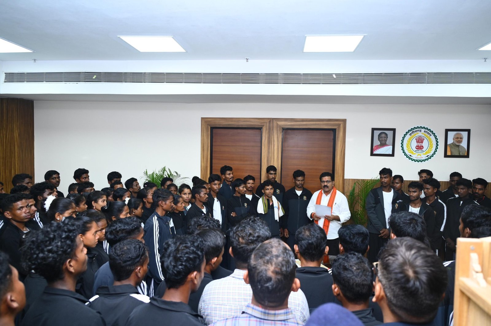 रायपुर, 13, अगस्त 2025-छत्तीसगढ़ सुकमा जिले के सुदूर वनांचल क्षेत्र कोंटा के 110 बच्चों ने आज मंत्रालय, महानदी भवन में उपमुख्यमंत्री श्री विजय शर्मा से मुलाकात की। ये बच्चे ‘स्वामी विवेकानंद युवा प्रोत्साहन योजना’ के तहत राजधानी रायपुर के शैक्षणिक भ्रमण पर आए थे। इस अवसर पर उपमुख्यमंत्री श्री शर्मा ने बच्चों से संवाद किया और उन्हें विश्वास दिलाया कि राज्य सरकार बस्तर के सर्वांगीण विकास के लिए पूरी तरह प्रतिबद्ध है।