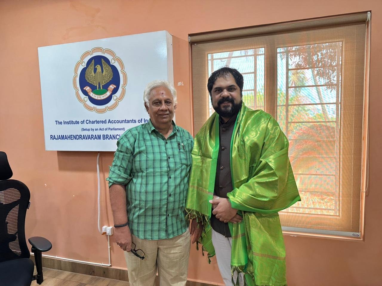 इंस्टिट्यूट ऑफ़ चार्टर्ड एकाउंटेंट्स ऑफ़ इंडिया की यंग एंड वोमेन मेंबर्स की केन्द्रीय समिति के कोऑप्टेड सदस्य एवम रायपुर शाखा के पूर्व अध्यक्ष सीए रवि ग्वालानी ने की आन्ध्रप्रदेश प्रदेश के राजमेंड्री आईसीएआई शाखा अध्यक्ष से मुलाकात