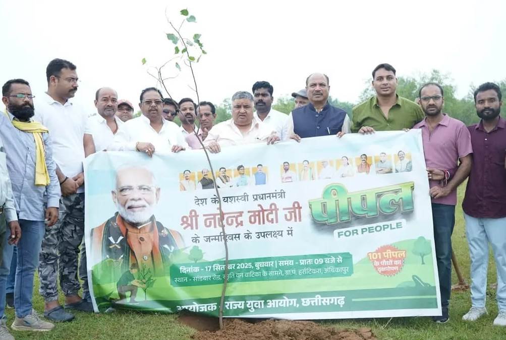 सेवा पखवाड़ा के अंर्तगत मंत्री श्री राजेश अग्रवाल ने ग्राम पंचायत हर्राटिकरा, सांडबार में ’’पीपल फार पीपल़़’’ अभियान के अंतर्गत पीपल का पौधा रोपित कर पर्यावरण संरक्षण का संदेश भी दिया।