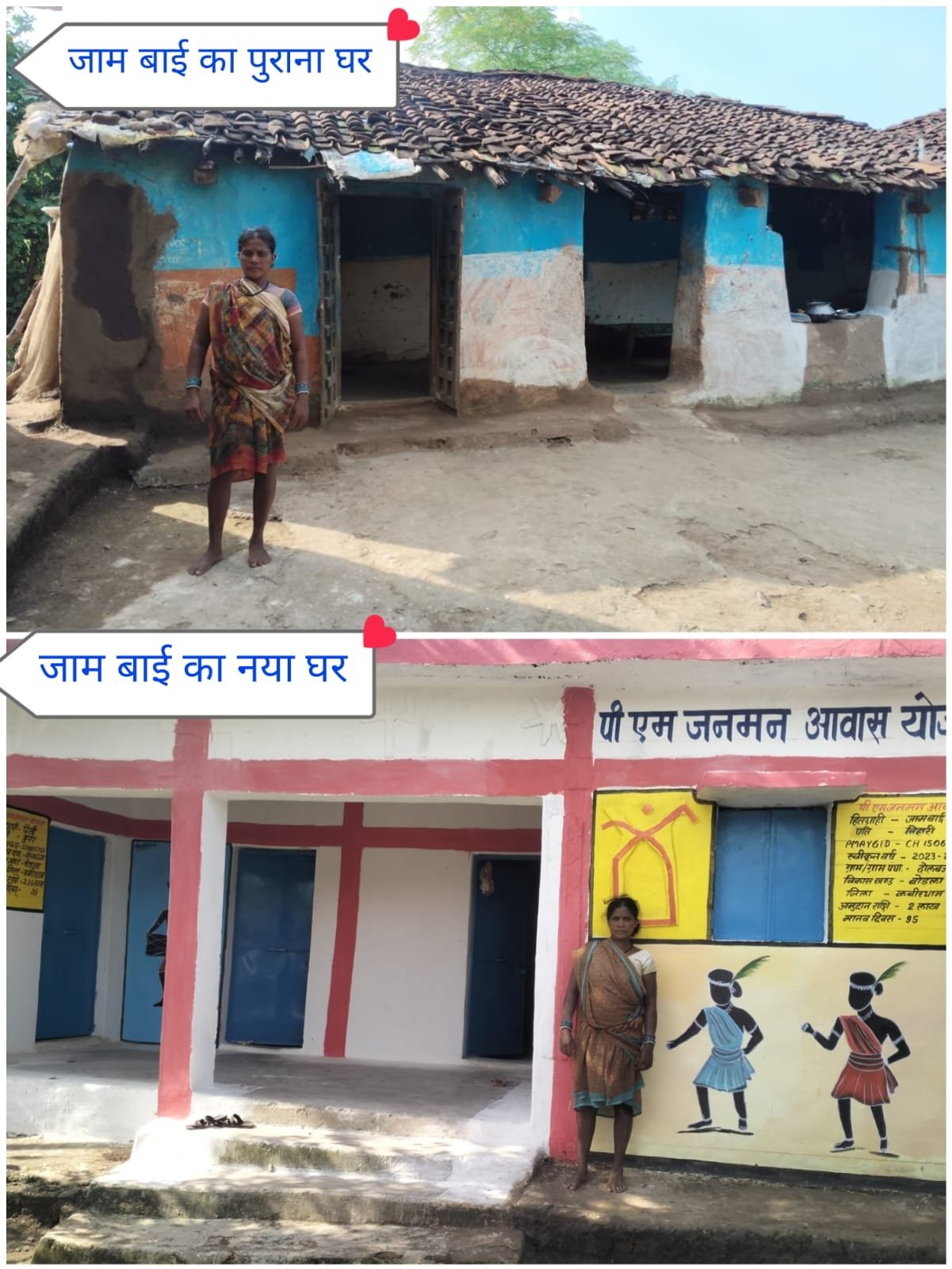 लाभार्थी सुकरतीन बाई बैगा बताती है कि पहले हम कच्ची छत एवं कच्ची मिट्टी से बने पुश्तैनी मकान में परिवार सहित रहते थे। सभी मौसम में परिवार को संभालने की समस्या बनी रहती थी। प्रधानमंत्री जनमन योजना अंतर्गत सर्वे हुआ और ग्राम सभा द्वारा मेरा नाम पात्रता सूची में जोड़ा गया। जिसके बाद वर्ष 2023-24 में आवास बनाने के लिए 2 लाख रुपए की स्वीकृति मिल गई। आवास स्वकृति मिलने के साथ पहले किश्त की राशि 40 हजार रूपये मेरे बैंक खाता में ऑन लाईन से आ गया। जैसे ही आवास मित्र द्वारा राशि खाता में आने की सूचना दिया वैसे ही ले-आऊट डालकर आवास निर्माण कार्य प्रारंभ हो गया। जैसे-जैसे आवास बनाता गया जियो टेग करने के बाद बाकी राशि उनके खाता में अंतरित होती गई। अब मेरा अपना पक्का आशियाना बनकर तैयार हो गया। मेरा परिवार अब सभी परेशानियों से मुक्त है।