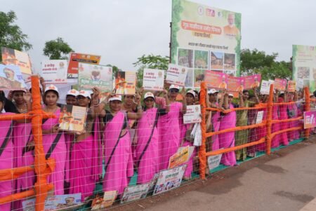 महिलाओं ने “नारी शक्ति – मोदी सरकार” के नारे लगाकर प्रधानमंत्री का स्वागत किया। पूरा क्षेत्र उल्लास, सम्मान और अनुशासन के वातावरण में डूबा हुआ है।