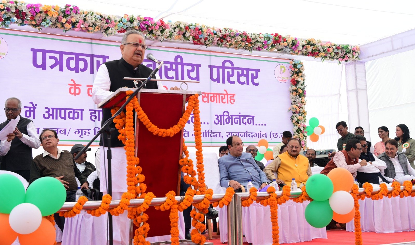 विधानसभा अध्यक्ष डॉ. रमन सिंह 10 एकड़ में निर्मित पत्रकार आवासीय परिसर के लोकार्पण एवं भूमिपूजन कार्यक्रम में हुए शामिल