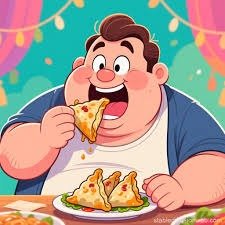 *मतलब आदमी खुश होगा तो मोटा होगा और खुशी से समोसा खाएगा तो और मोटा होगा।*