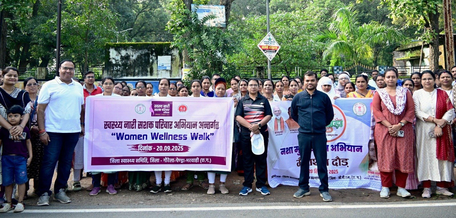 रायपुर, 20 सितंबर 2025/देश के यशस्वी प्रधानमंत्री नरेंद्र मोदी के 75 वें जन्म दिवस के अवसर पर 17 सितंबर से 2 अक्टूबर तक सेवा पखवाड़ा मनाया जा रहा है। इसी अभियान के अंतर्गत गौरेला-पेंड्रा-मरवाही जिले में ‘‘स्वस्थ नारी, सशक्त परिवार अभियान‘‘ के तहत आज महिलाओं के स्वास्थ्य और जागरूकता को ध्यान में रखते हुए ‘‘वूमेन वेलनेस वॉक‘‘ का आयोजन किया गया। कार्यक्रम की शुरुआत कलेक्टर श्रीमती लीना कमलेश मंडावी के नेतृत्व में की गई, जिन्होंने कार्यक्रम में उपस्थित सभी अधिकारी-कर्मचारियों और महिलाओं को स्वस्थ रहने और अपने परिवार को सशक्त बनाने की शपथ दिलाई। कार्यक्रम के तहत आयोजित वूमेन वेलनेस वॉक में महिलाओं ने लगभग 5 किलोमीटर की दूरी चल कर तय की। यह वॉक दत्तात्रेय गार्डन से शुरू होकर रानी दुर्गावती चौक, तिराहा चौक, सारबहरा जोगीडोंगरी, अनीश चौक होते हुए मड़ना स्थित महफिल रेस्टोरेंट तक संपन्न हुई। इस दौरान प्रतिभागियों में उत्साह और जागरूकता का विशेष उत्साह देखा गया।