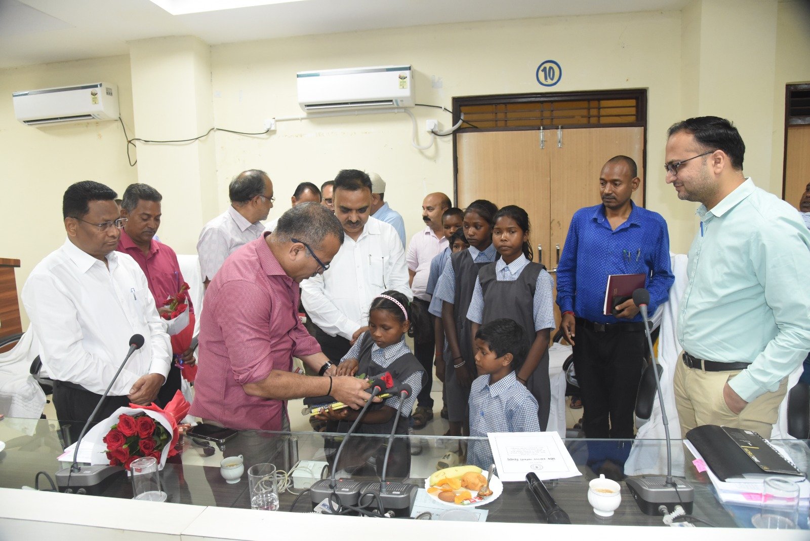 विभिन्न परिस्थितियों के कारण शाला छोड़ चुके बच्चों को पुनः शिक्षा की मुख्यधारा से जोड़ने सरगुजा जिला प्रशासन की पहल अब रंग ला रही है। कलेक्टर के निर्देशानुसार शिक्षा विभाग द्वारा विकासखण्ड स्तरीय समिति का गठन किया गया। जिले में विशेष अभियान चलाकर शाला त्यागी बच्चों का चिन्हांकन किया जा रहा है। इसी कड़ी में आज विकासखण्ड लुण्ड्रा के छेरमुंडा संकुल के विशेष पिछड़ी जनजाति पहाड़ी कोरवा के 06 शालात्यागी बच्चों को स्कूल में प्रवेश दिलाया गया। जिला कलेक्टोरेट सभाकक्ष में कलेक्टर ने इन बच्चों को पुस्तक, स्कूल ड्रेस सहित अन्य सामग्री प्रदान कर औपचारिक शाला प्रवेश कराया। अध्ययन सामग्री पाकर बच्चों के चेहरे पर मुस्कान आ गई, बच्चों ने कहा कि अब हम स्कूल जाना नहीं छोड़ेंगे।