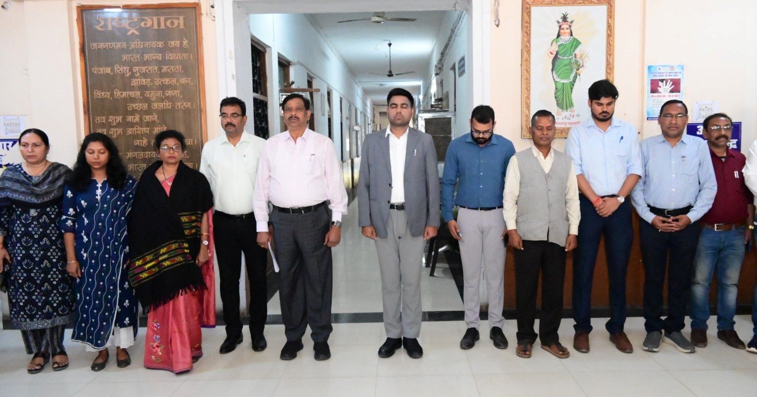 शहीद दिवस पर कलेक्टर  जितेन्द्र यादव ने आज कलेक्टोरेट परिसर में स्वतंत्रता संग्राम के अमर शहीदों को मौन धारण कर श्रद्धाजंलि अर्पित की। कलेक्टर श्री जितेन्द्र यादव एवं कलेक्टोरेट के अधिकारी तथा कर्मचारियों ने देश के स्वतंत्रता संग्राम में अपने प्राणों की आहुति देने वाले शहीदों की स्मृति में दो मिनट का मौन रखकर स्वतंत्रता संग्राम के अमर शहीदों को श्रद्धाजंलि दी। इस दौरान अपर कलेक्टर  सीएल मारकण्डेय, नगर निगम आयुक्त श्री अतुल विश्वकर्मा, संयुक्त कलेक्टर श्रीमती शीतल बंसल सहित कलेक्टोरेट के अन्य अधिकारी तथा कर्मचारी उपस्थित रहे।