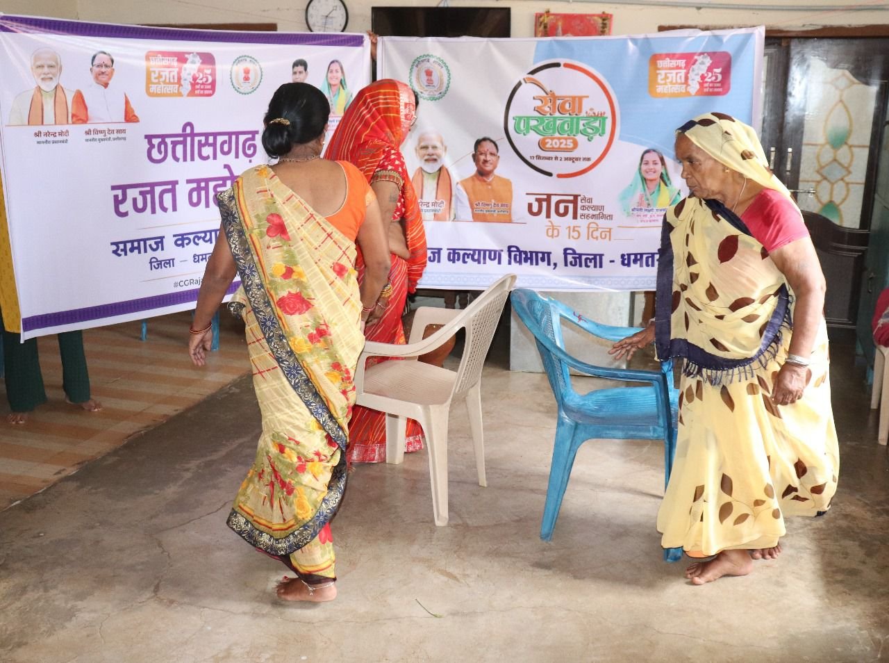 धमतरी । छत्तीसगढ़ राज्य स्थापना की रजत जयंती समारोह के अवसर पर आयोजित सेवा पखवाड़ा कार्यक्रम अंतर्गत जलाराम वृद्धाश्रम में हर्षोल्लास के साथ खेलकूद प्रतियोगिताओं का आयोजन किया गया। वृद्धजन उत्साहपूर्वक मटका फोड़, जलेबी दौड़, कुर्सी दौड़ और नींबू दौड़ जैसी पारंपरिक प्रतियोगिताओं में शामिल हुए। इन खेलों से न केवल मनोरंजन हुआ बल्कि वृद्धजनों में उत्साह और आपसी सहभागिता भी देखने को मिली।