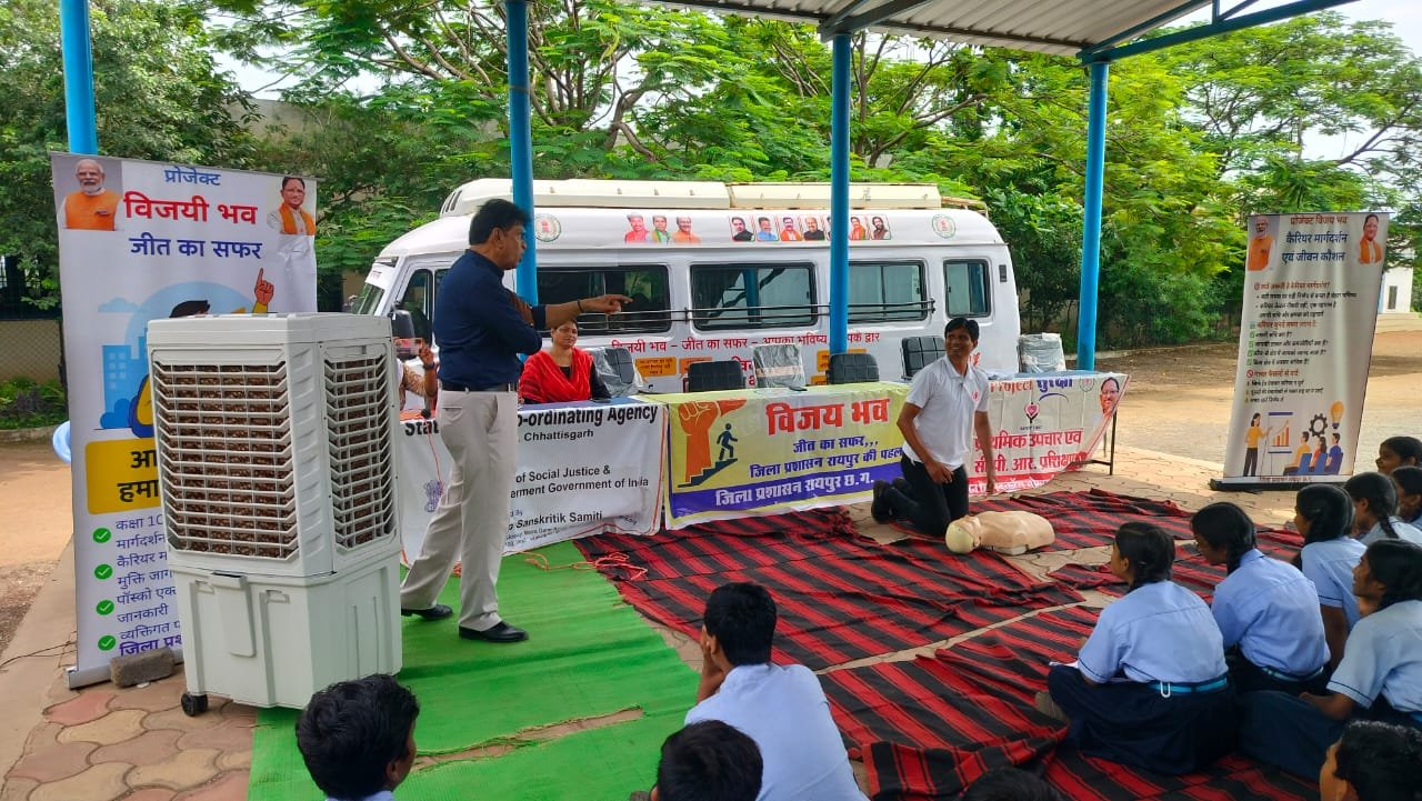 रायपुर, 12 अगस्त 2025 – मुख्यमंत्री श्री विष्णुदेव साय के निर्देशन में जिला प्रशासन रायपुर एवं रेड क्रॉस सोसाइटी, जिला शाखा रायपुर के संयुक्त प्रयास से “प्रोजेक्ट सुरक्षा” कार्यक्रम के अंतर्गत एक महत्वपूर्ण जीवनरक्षक प्रशिक्षण कार्यक्रम आयोजित किया गया। कलेक्टर डॉ गौरव सिंह के मार्गदर्शन में यह प्रशिक्षण दो स्थानों पर संपन्न हुआ। शासकीय स्वामी आत्मानंद इंग्लिश मीडियम हाई स्कूल, सारागांव में 250 छात्र-छात्राओं को तथा डॉ. खूबचंद बघेल शासकीय उच्चतर माध्यमिक विद्यालय, सिलयारी (धरसींवा ब्लॉक) में 600 छात्र-छात्राओं को प्राथमिक उपचार और सीपीआर (कार्डियो पल्मोनरी रिससिटेशन) का प्रशिक्षण दिया गया।
