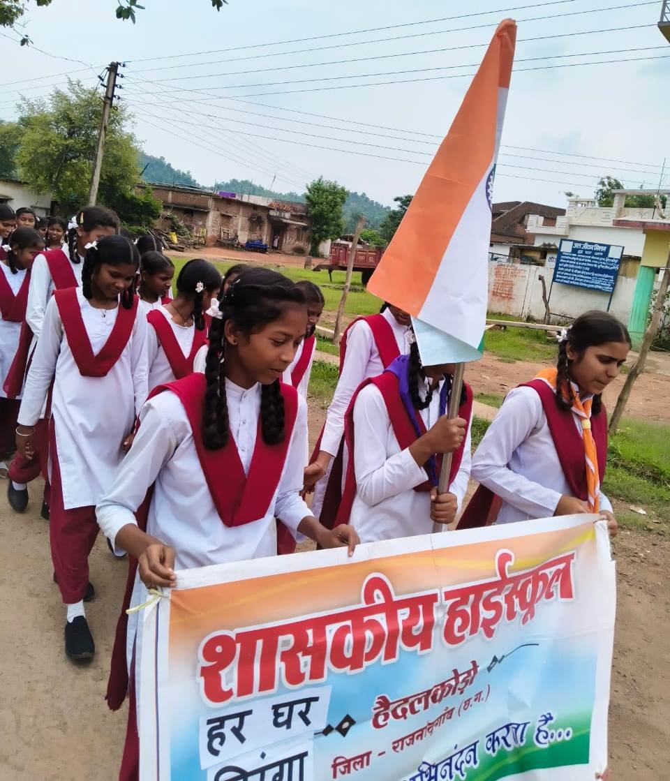 राजनांदगांव 12 अगस्त 2025। हर घर तिरंगा, हर घर स्वच्छता : स्वतंत्रता का उत्सव, स्वच्छता के संग थीम पर देशभक्ति की भावना को जन-जन तक पहुंचाने और स्वच्छता के प्रति जनचेतना को सशक्त बनाने के लिए स्कूली विद्यार्थियों द्वारा तिरंगा रैली निकाली गई। उल्लास और खुशी के साथ आजादी के उत्सव को मनाने के लिए छुरिया विकासखंड के शासकीय हाई स्कूल हैदलकोड़ा एवं शासकीय उच्चतर माध्यमिक विद्यालय करमरी, राजनांदगांव विकासखंड के ठाकुर प्यारे लाल सिंह नगर पालिक निगम उच्चतर माध्यमिक विद्यालय राजनांदगांव, शासकीय उच्चतर माध्यमिक विद्यालय तेलीनबांधा सहित अन्य विद्यालयों के विद्यार्थियों द्वारा तिरंगा रैली निकालकर स्वतंतत्रा के संदेश एवं महत्व को बताया गया।