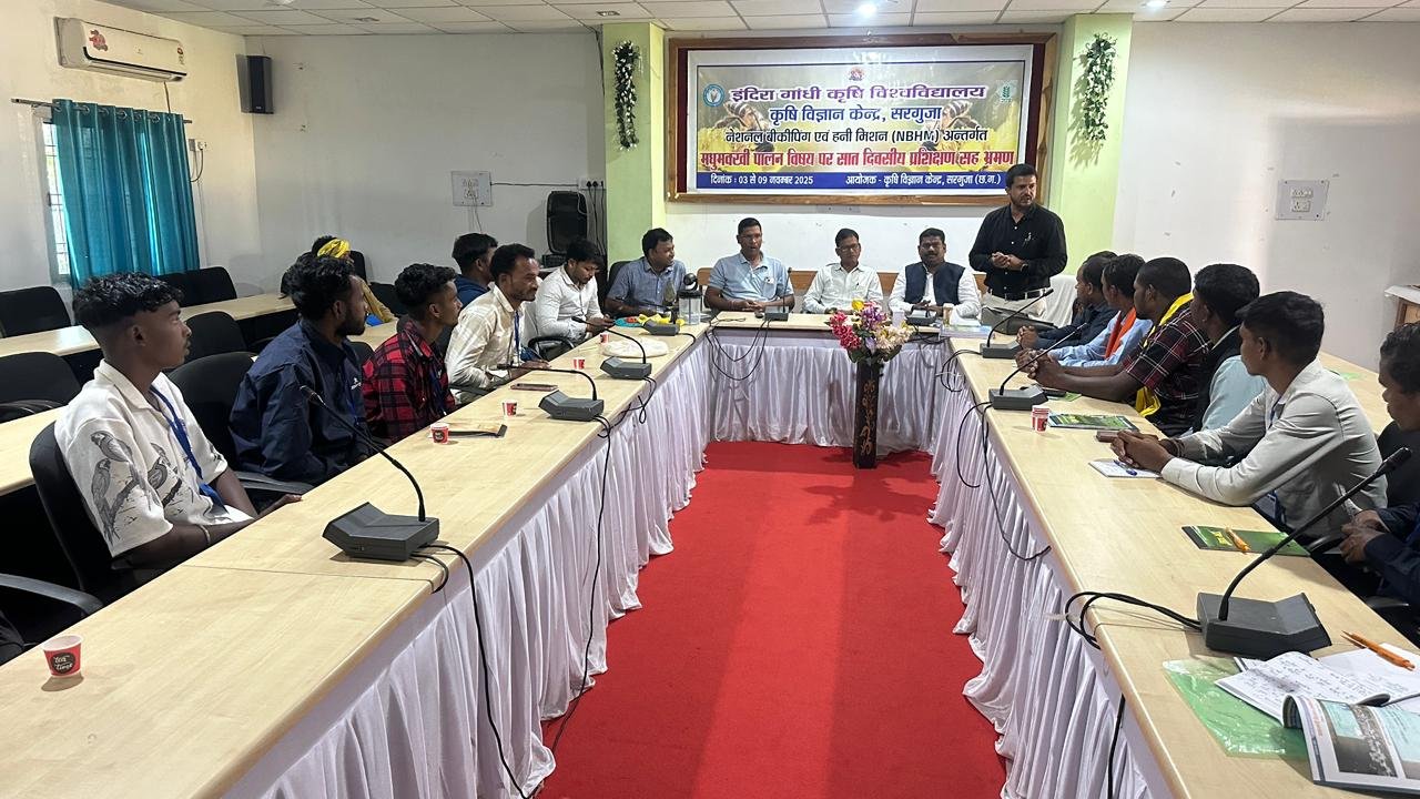 अम्बिकापुर 09 नवम्बर 2025/ इंदिरा गांधी कृषि विश्वविद्यालय रायपुर के कुलपति डॉ. गिरिश चंदेल के निर्देशन एवं विश्वविद्यालय के निदेशक डॉ. एस.एस. टुटेजा के मार्गदर्शन में, कृषि विज्ञान केन्द्र सरगुजा में नेशनल बीकीपिंग एंड हनी मिशन (NBHM)के अंतर्गत मधुमक्खी पालन विषय पर सात दिवसीय आवासीय प्रशिक्षण कार्यक्रम का सफल समापन किया गया।