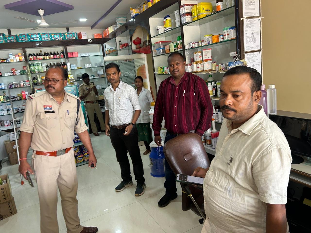 निरीक्षण दल में औषधि निरीक्षक अमरेश कुमार तिर्की, औषधि निरीक्षक अनिल कुमार पैकरा तथा पुलिस विभाग से सहायक उप निरीक्षक राकेश मिश्रा एवं सहायक उप निरीक्षक विरेन्द्र कुजूर शामिल थे।