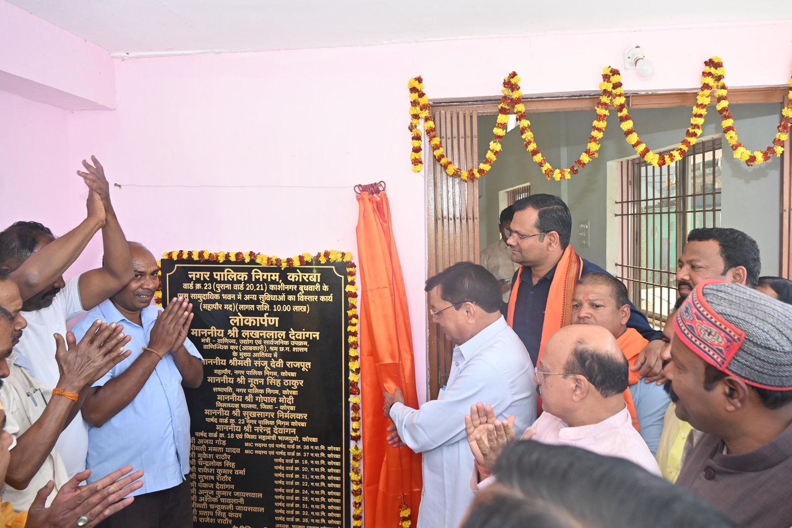 कोरबा नगर निगम क्षेत्र अंतर्गत गौरी शंकर मंदिर के समीप बने 10 लाख की लागत के सामुदायिक भवन का फीता काटकर लोकार्पण किया। इस अवसर पर क्षेत्र वासियों ने मंत्री श्री देवांगन का अभिनंदन किया। कार्यक्रम में सभापति नूतन सिंह, पार्षद सुख सागर निर्मलकर, पार्षद पंकज देवांगन, पार्षद श्री नरेंद्र देवांगन, पार्षद श्री अशोक चावलानी, पार्षद श्रीमती ममता यादव, जिला उपाध्यक्ष श्री प्रफुल्ल तिवारी के साथ-साथ क्षेत्रवासी अधिक संख्या में उपस्थित रहे।