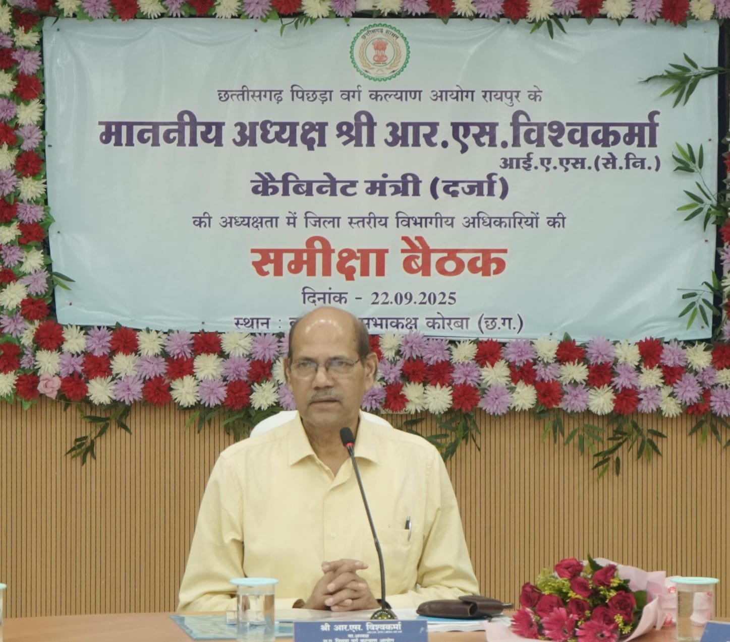 कोरबा 22 सितंबर 2025/छत्तीसगढ़ राज्य पिछड़ा वर्ग आयोग के अध्यक्ष केबिनेट मंत्री दर्जा श्री आर.एस.विश्वकर्मा आई.ए.एस.(से.नि.) ने सदस्यगण श्री नीलांबर नायक, श्री बलदाउ राम साहू, श्री हरिशंकर यादव, श्री यशवंत सिंह वर्मा, श्री कृष्णा गुप्ता एवं सचिव श्री अमित श्रीवास्तव की उपस्थिति में विभागीय बैठक लेकर जिले में शहरी तथा ग्रामीण क्षेत्र में अन्य पिछड़ा वर्ग के हुए सर्वे की समीक्षा की। इस अवसर पर अध्यक्ष श्री विश्वकर्मा ने आयोग की पृष्ठभूमि के संबंध में बताया कि आयोग के बनने के पश्चात ओबीसी वर्ग के कल्याण की दिशा में कार्य किया जा रहा है। उन्होंने बताया कि आयोग द्वारा शहरी और ग्रामीण क्षेत्र में ओबीसी जनसंख्या के अनुपात में आरक्षण व्यवस्था, आर्थिक सामाजिक सुधार कार्य, शासन की योजनाओं में अन्य पिछड़ा वर्ग की भागीदारी तथा अभी तक की भागीदारी में योजनाओं का लाभ उठा पाने में वंचित जातियों का पता लगाना भी शामिल है। अध्यक्ष श्री विश्वकर्मा ने बताया कि सरकार द्वारा ओबीसी वर्ग के हित के लिए अलग से मंत्री, विभाग बनाया गया है। इसके साथ ही सरकार की योजनाओं में अन्य पिछड़ा वर्ग के लिए बजट का प्रावधान करने और उनका कल्याण के दिशा में कदम उठाना भी है। उन्होंने कहा कि छत्तीसगढ़ पिछड़ा वर्ग कल्याण आयोग का उद्देश्य प्रदेश में पिछड़ा वर्ग समुदाय के कल्याण को ध्यान में रखते हुए उनके आर्थिक, सामाजिक, शैक्षणिक और राजनैतिक भागीदारी फोकस करना है।